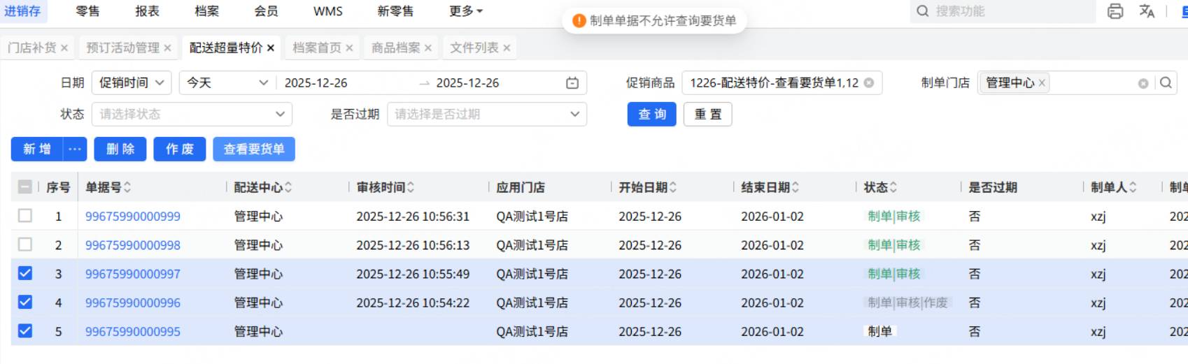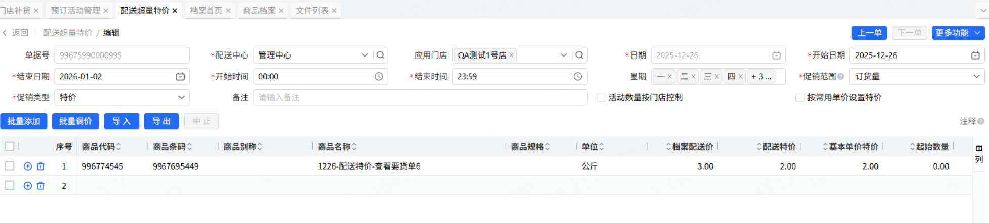 针对勾选的配送超量特价,显示要货商品中应用这个配送超量特价的要货单商品