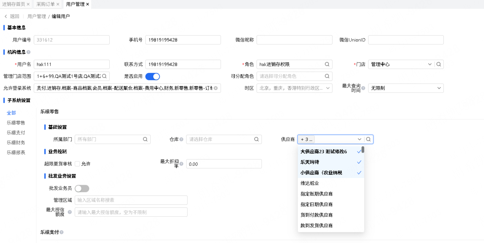 乐檬进销存 - 供应商预付支持按用户选择的供应商过滤供应商