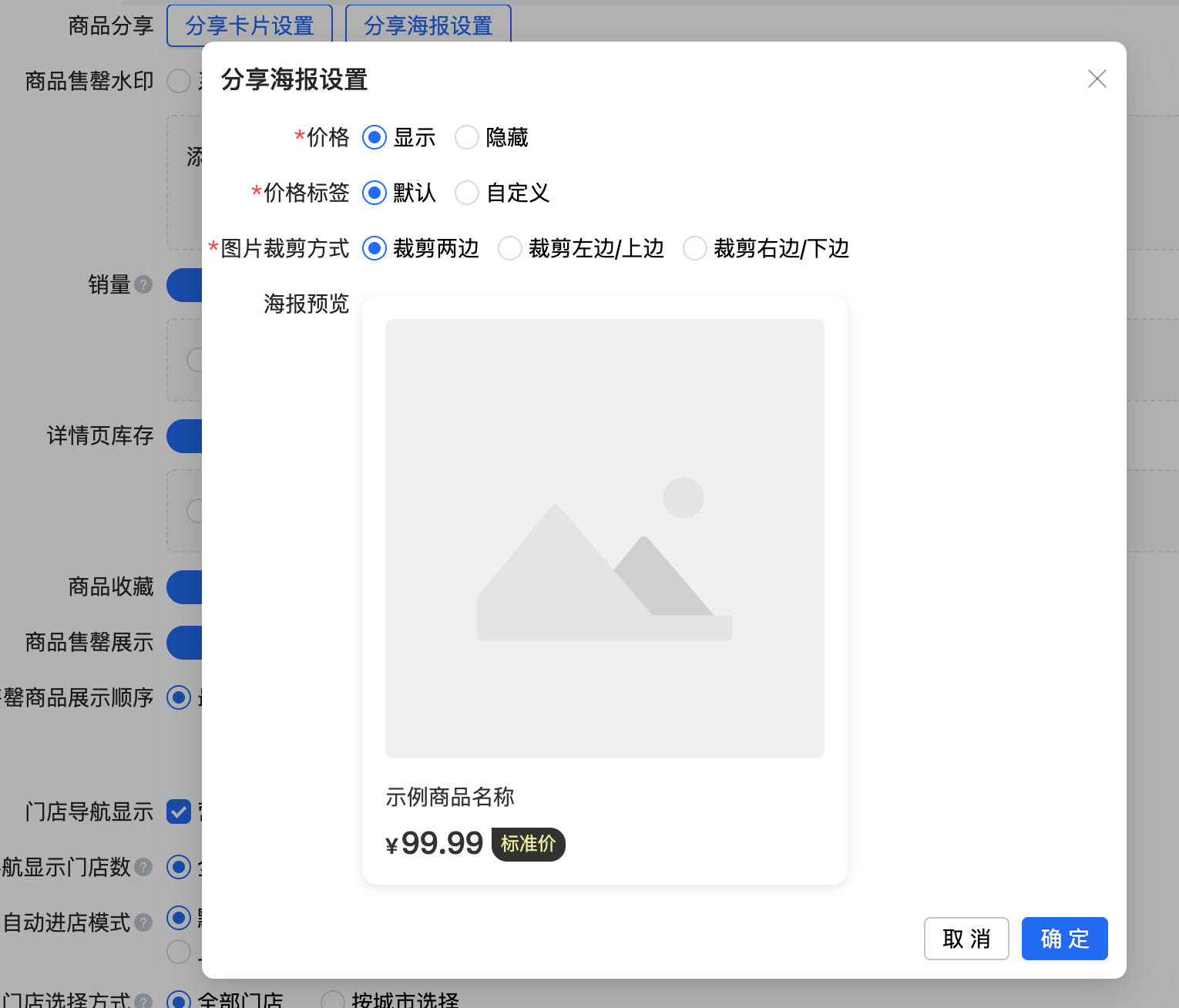 价格:设置海报中价格是否展示,隐藏后同步隐藏价格标签展示