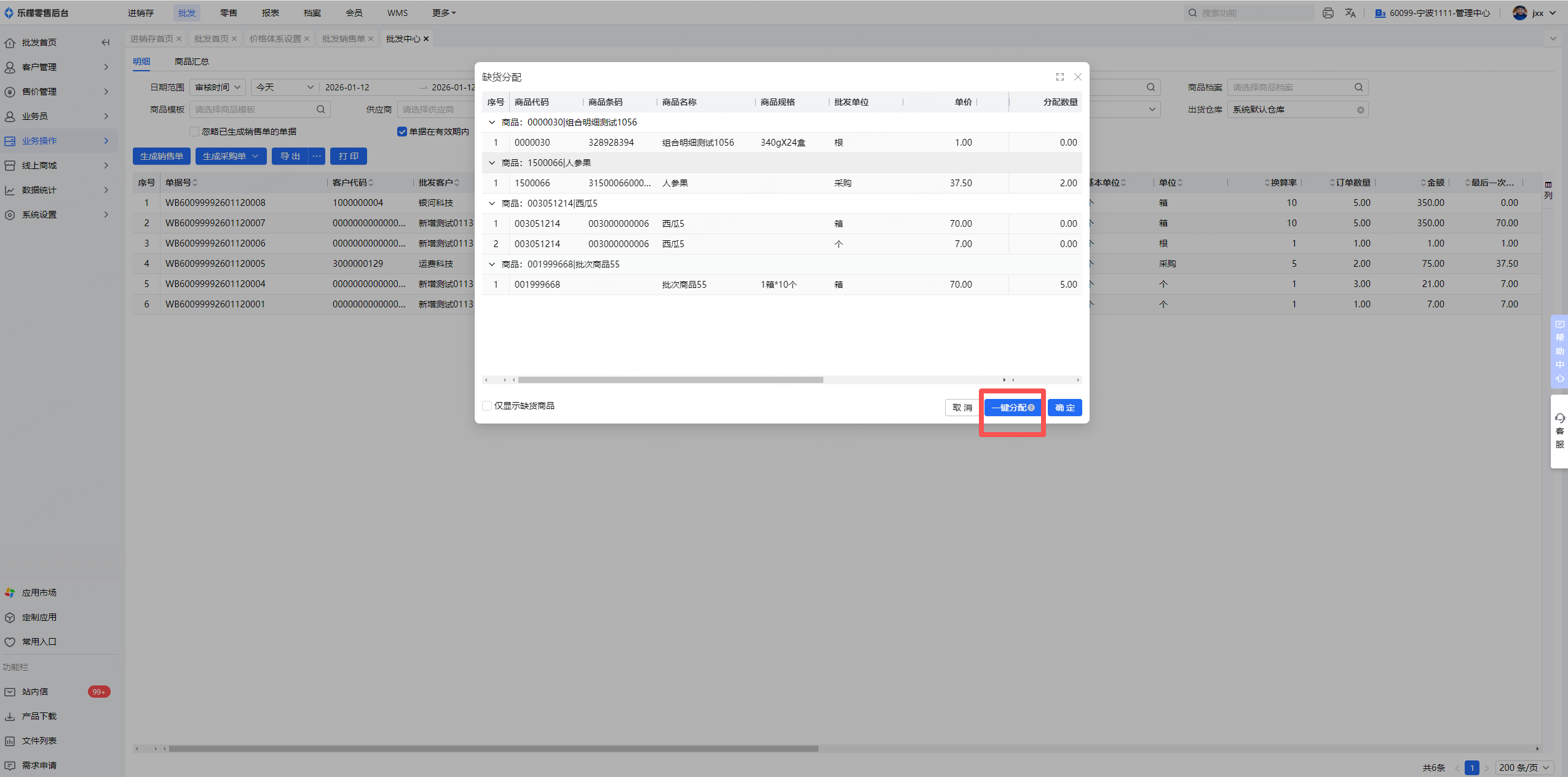 乐檬商贸 - 批发中心缺货分配增加一键分配功能