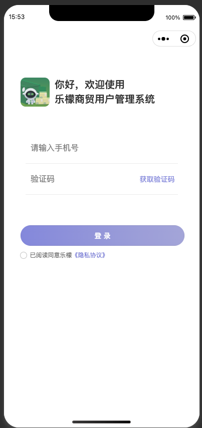 乐檬商贸 - 官方小程序登录取消一键授权,改为手机号验证码登录