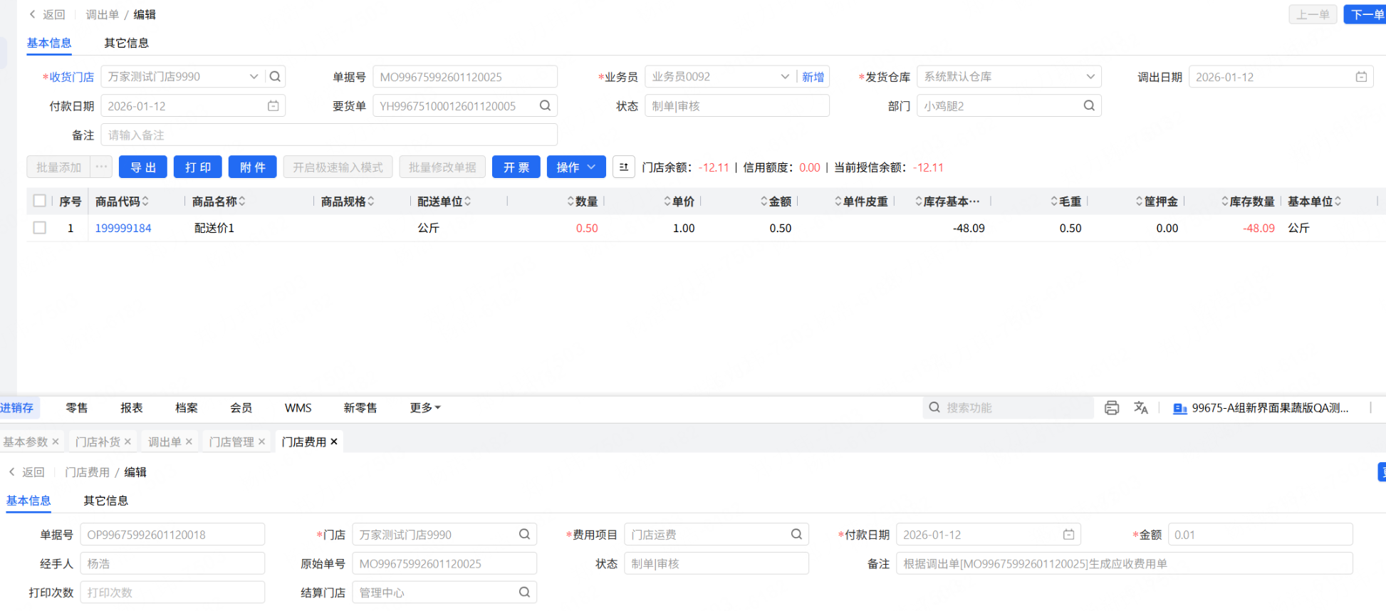 若是门店管理设置了运费=要货金额比例,那么要货单审核时,生成的费用单金额绝对值<0.01,要货单任然允许继续生成,且不生成门店费用单。