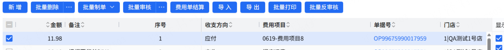 通过门店合同管理生成的“费用单”对应字段按照对应单据中“费用项目”值赋值,且需要将对应的收支方向一并带入