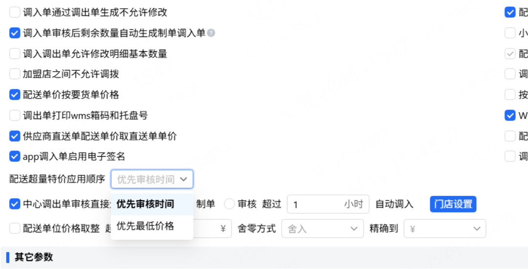 乐檬进销存 - 配送参数调出调入单参数,增加参数“配送超量特价应用顺序”