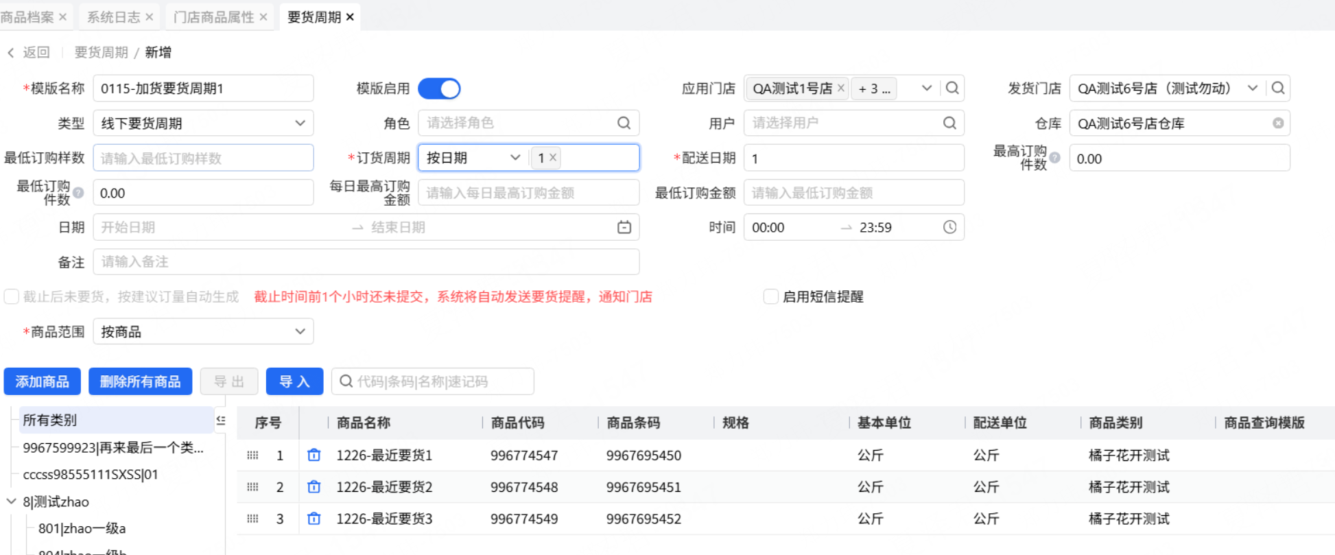 选择完要货周期后,商品需要和要货周期的商品取交集。