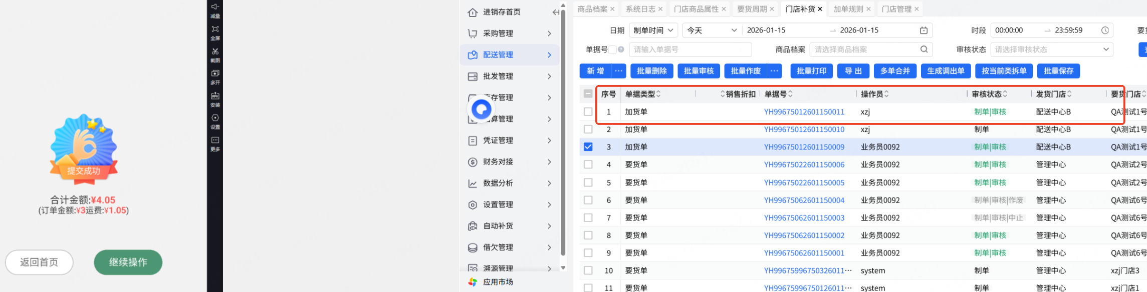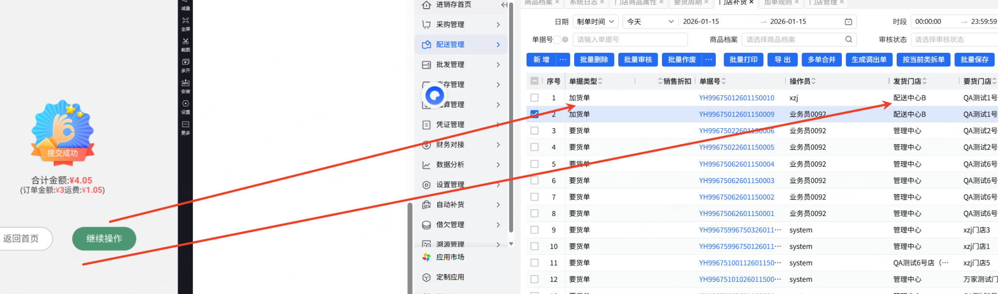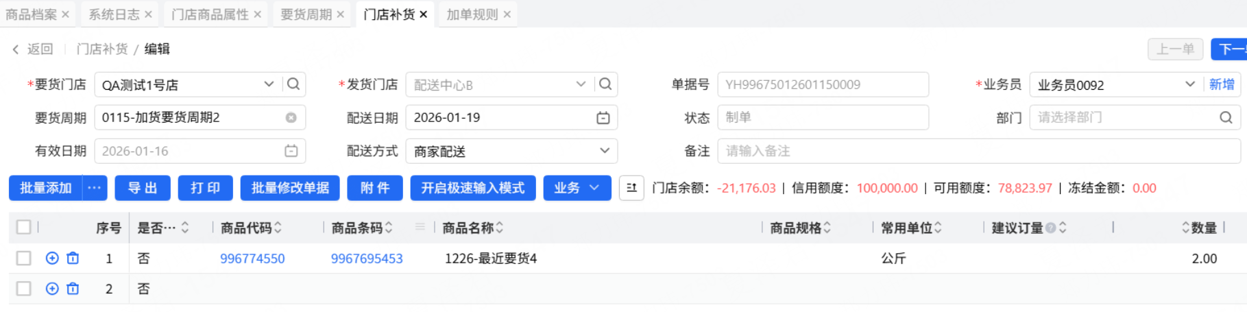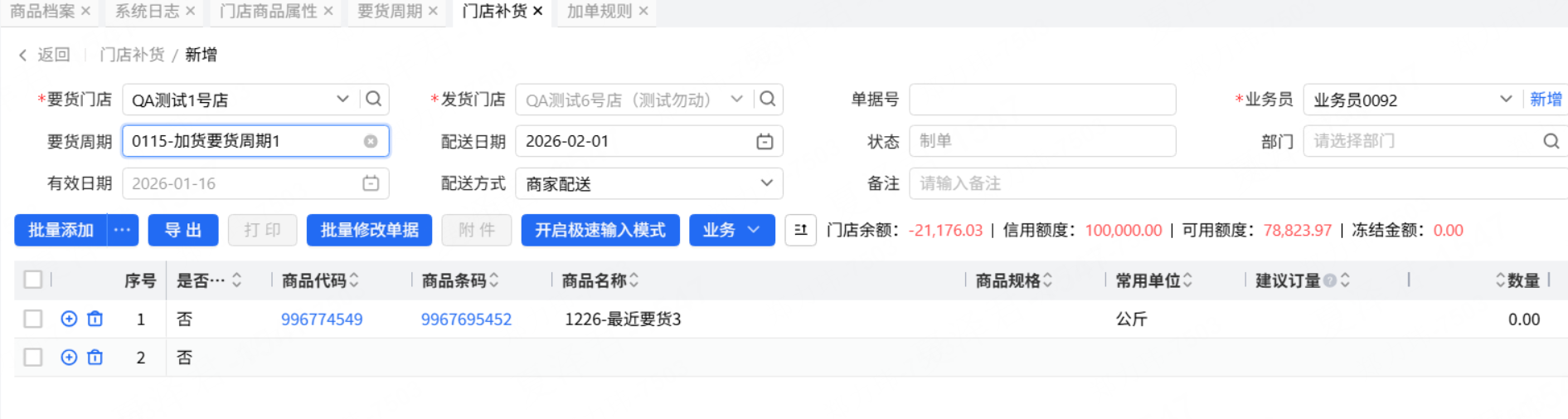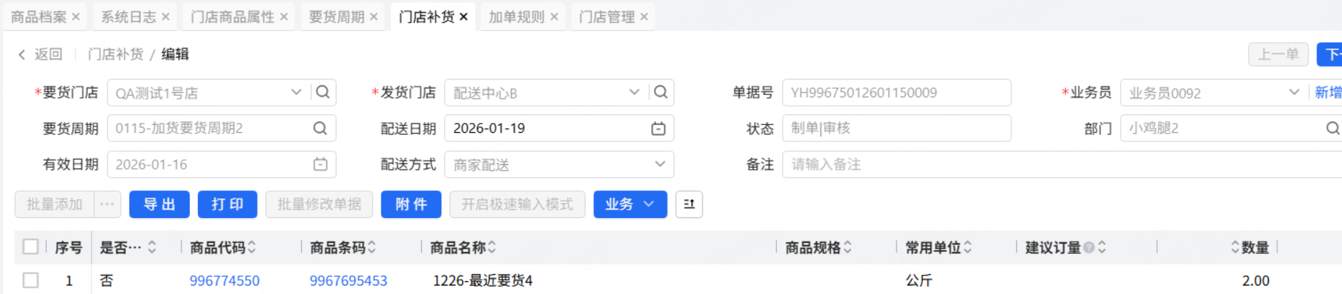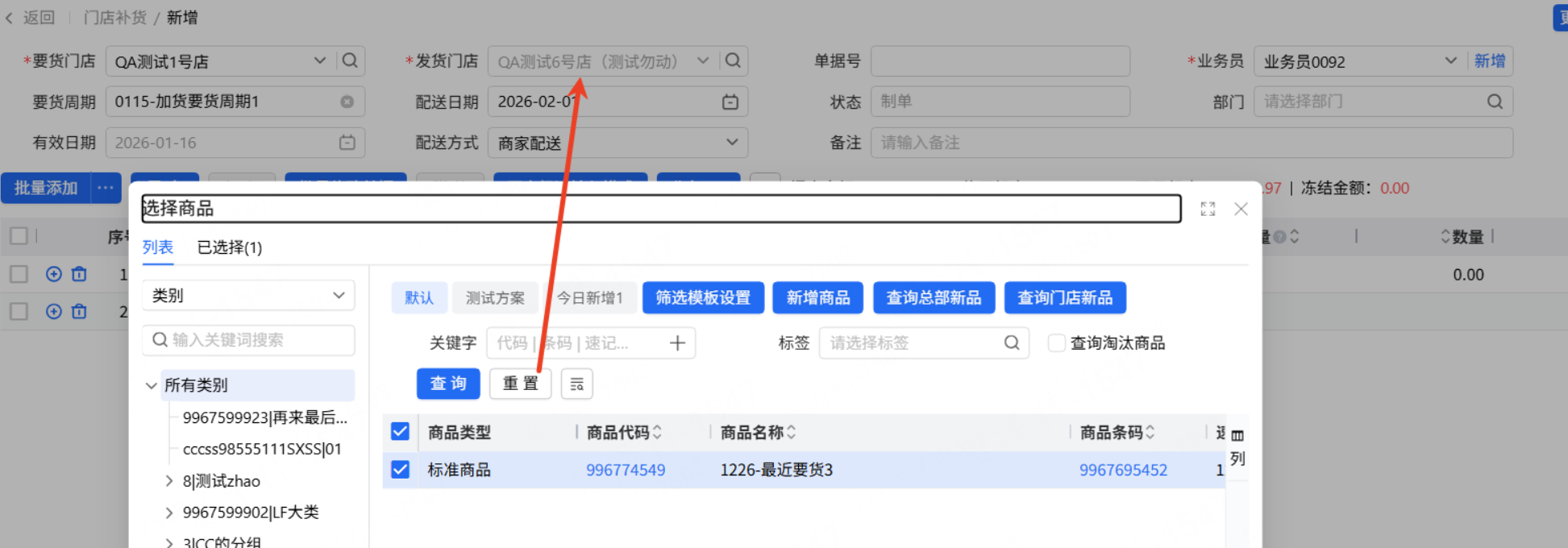 选择完要货周期后,需要按要货周期的发货门店替换加货单的发货门店