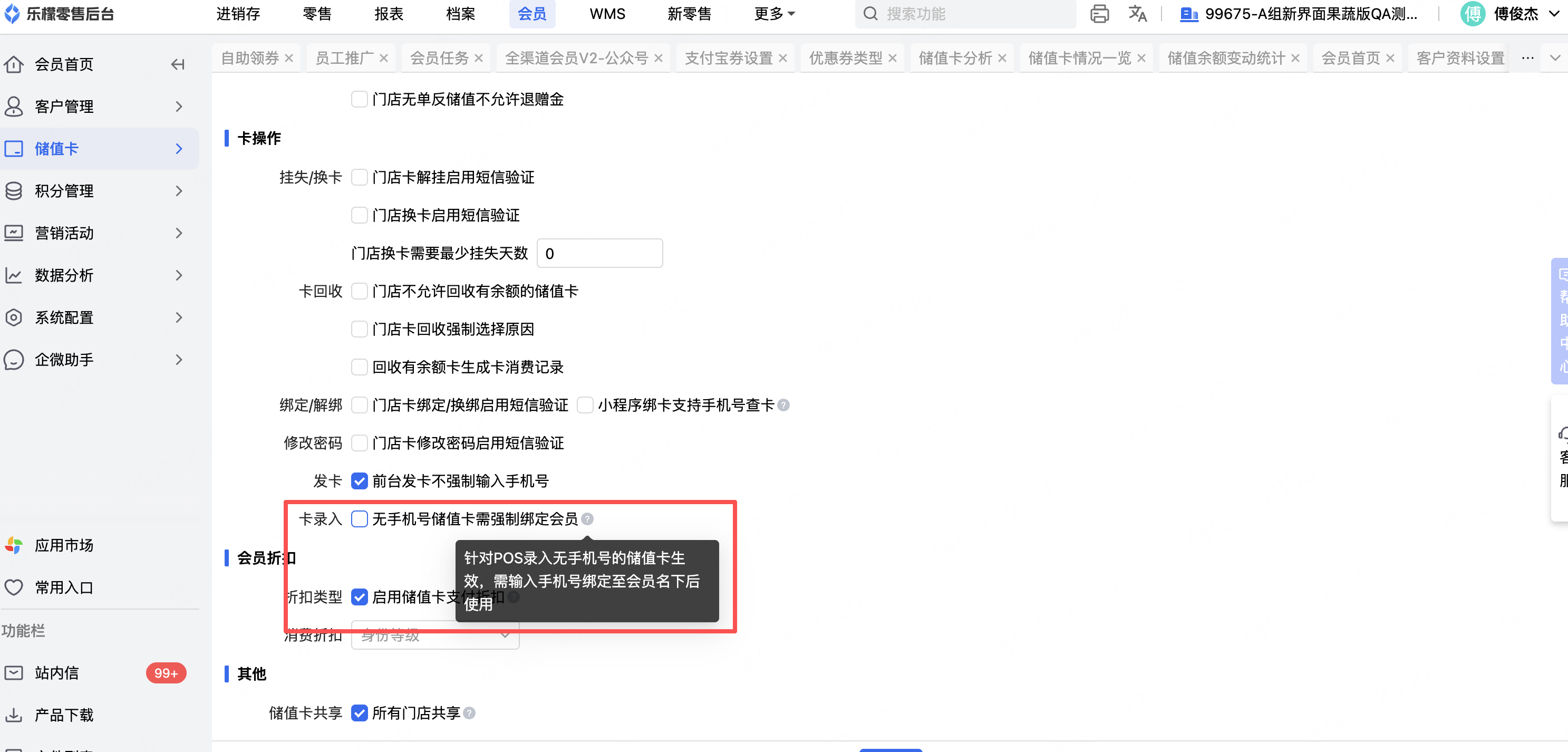 1、储值卡参数-卡录入参数,新增参数「无手机号储值卡需强制绑定会员」
