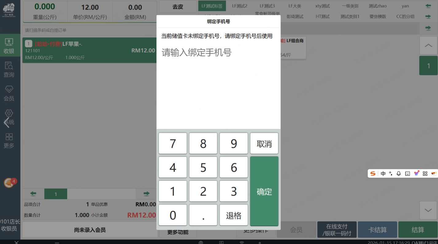 全渠道会员-无手机号储值卡POS需绑定手机号