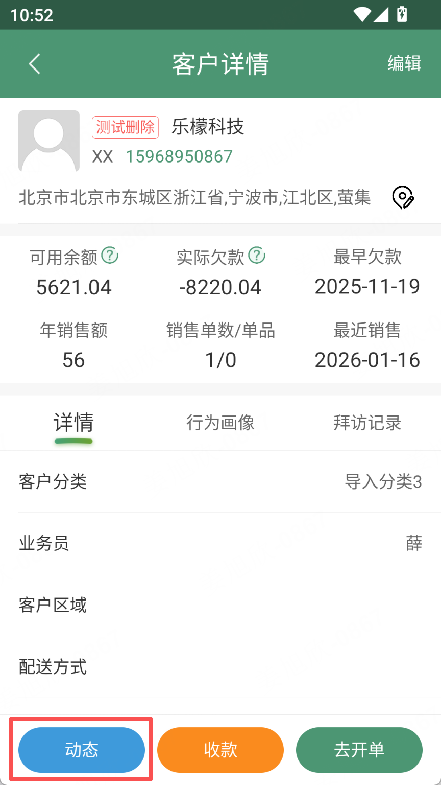 功能路径:商贸app-客户管理-客户详情-动态