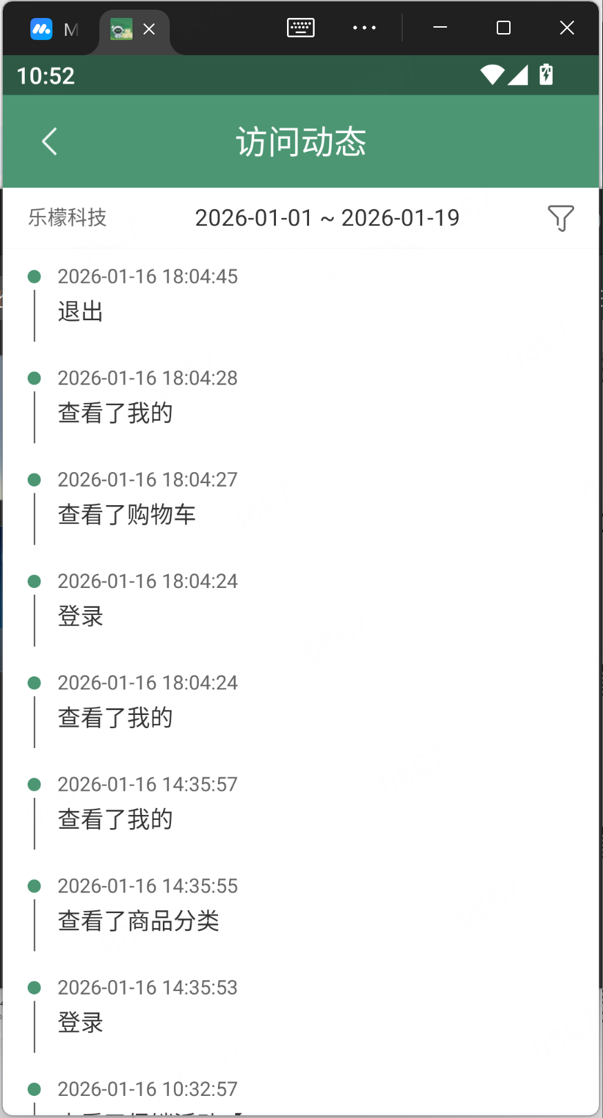1、客户详情页面左下角新增一个按钮“动态”,点击跳转至访问动态页面,可查看客户在小程序访问的记录(同后台商城访问统计-操作日志一致),没有则展示为空