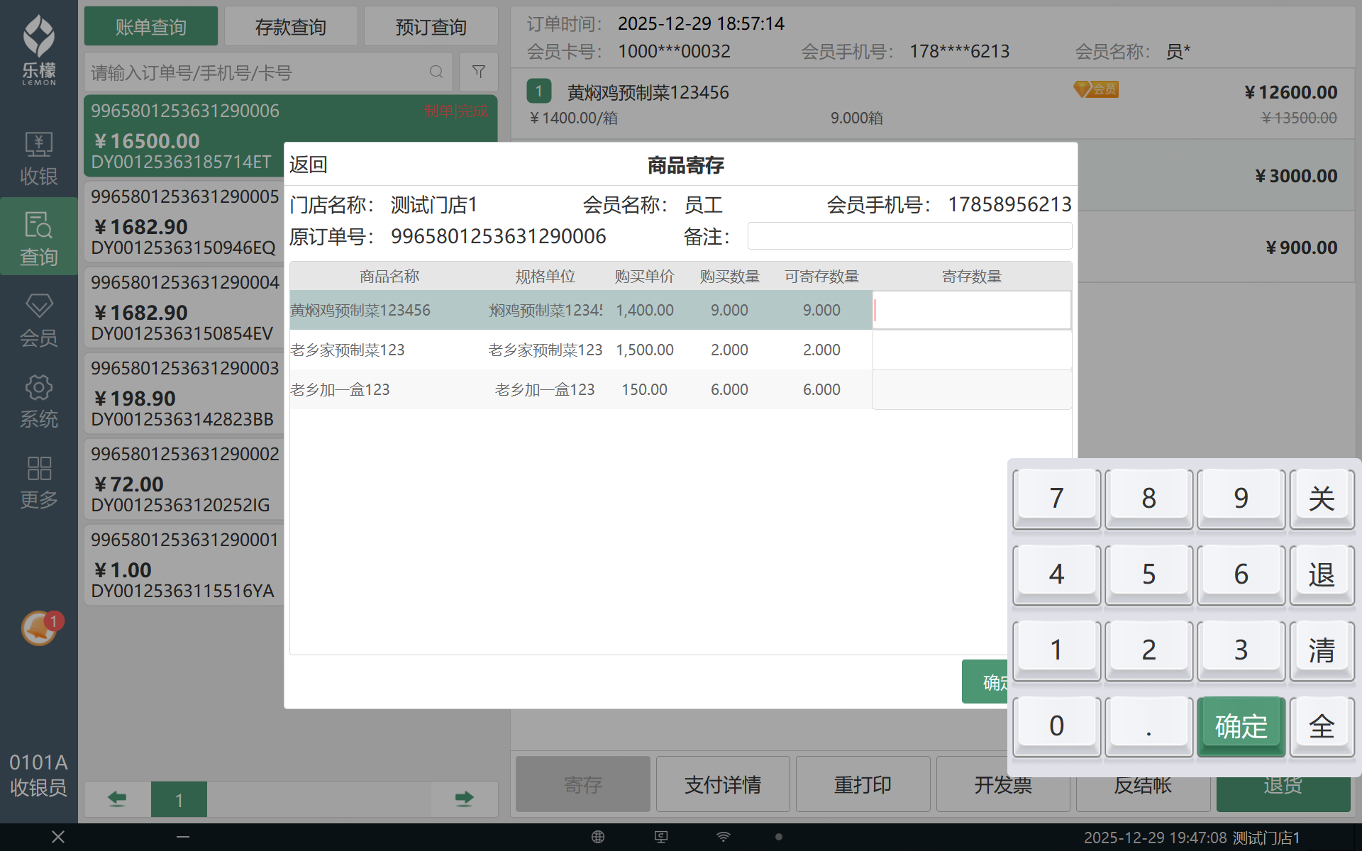 支持按会员结账单进行寄存操作