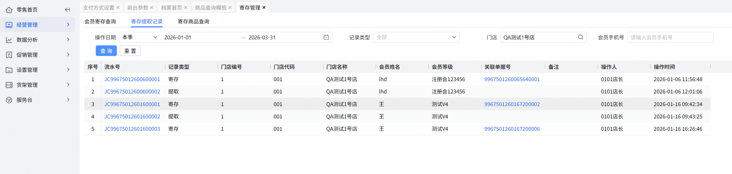 零售--经营管理--寄存管理