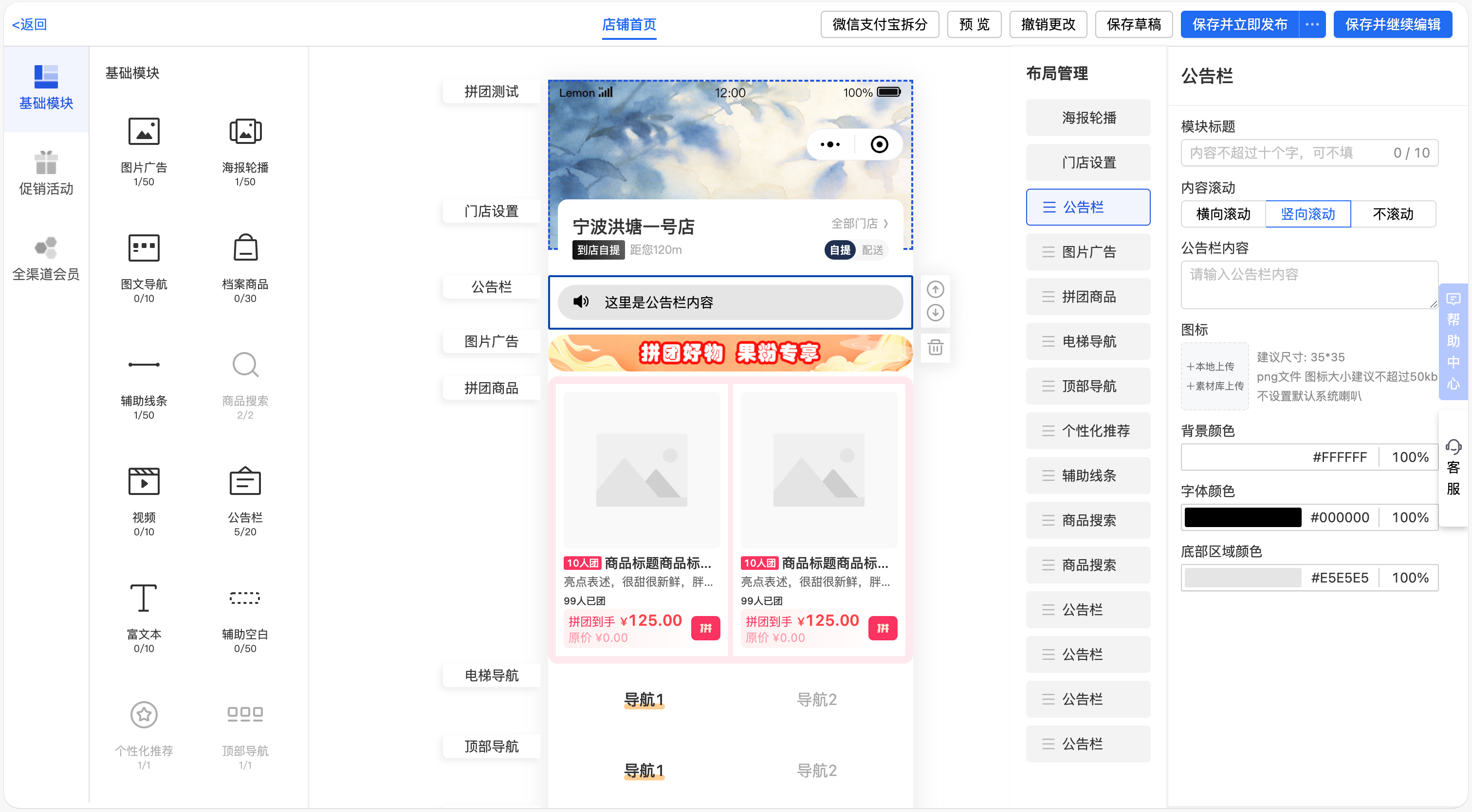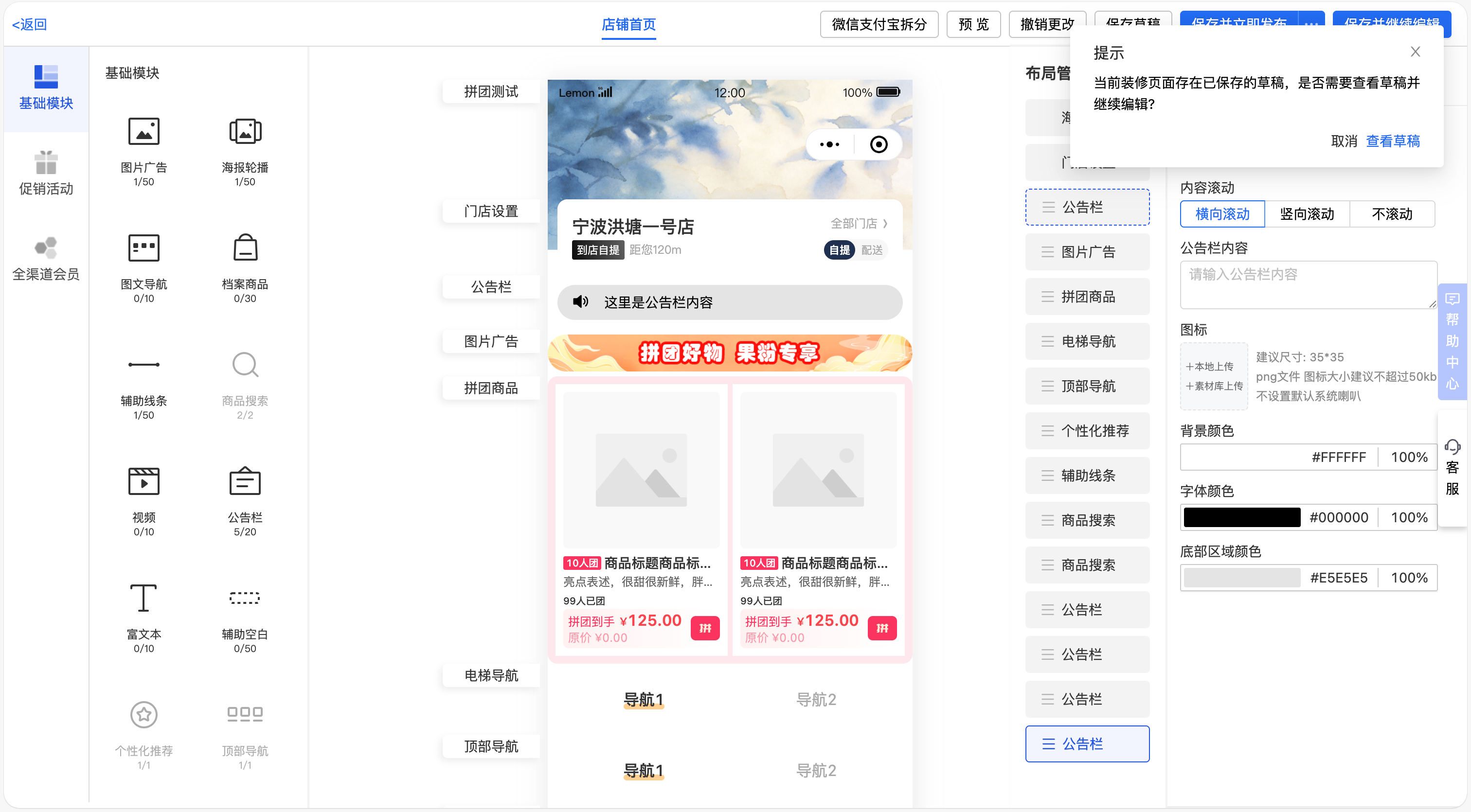 乐檬新零售 - 店铺装修支持保存到草稿
