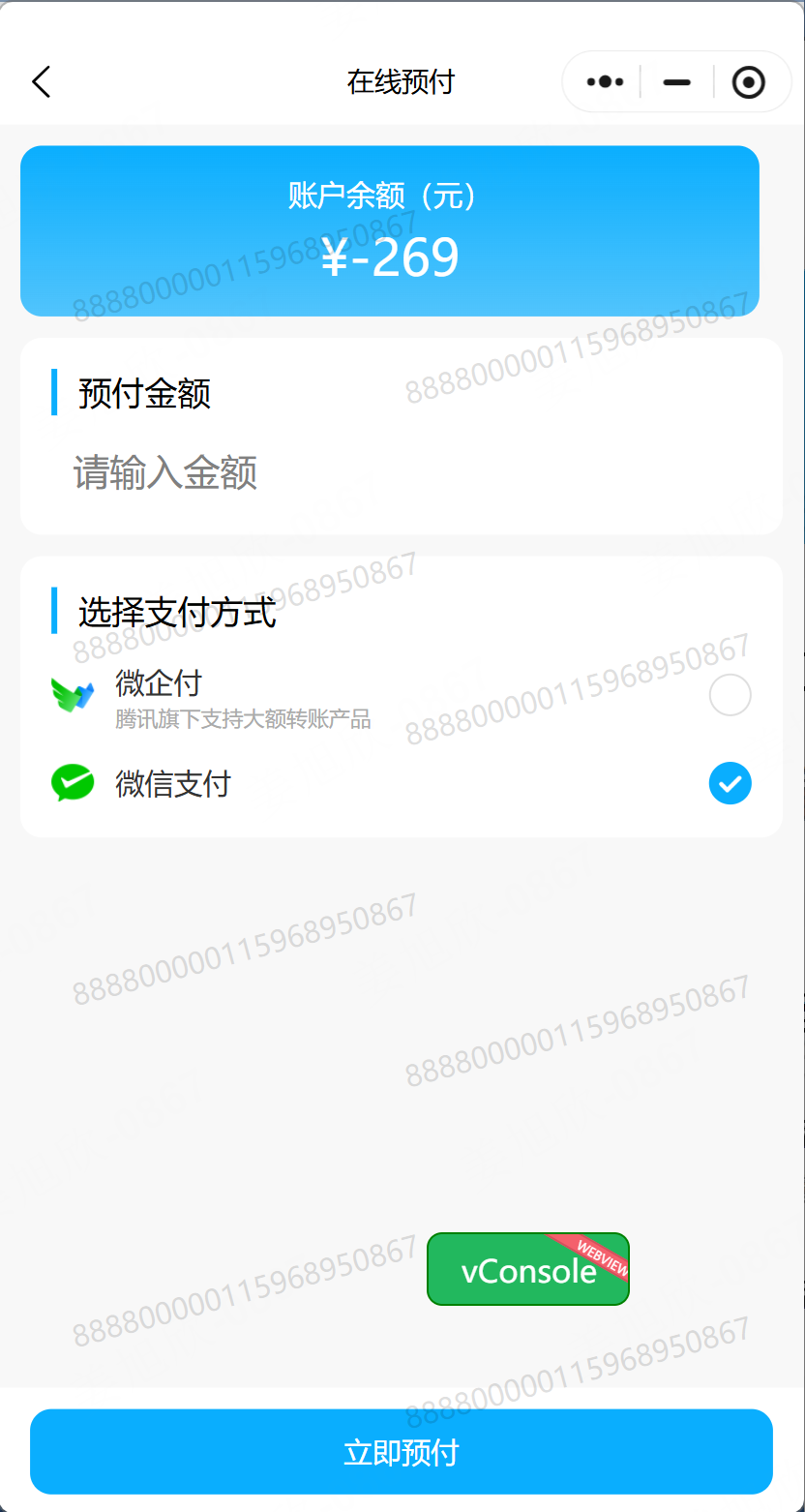 客户用的商贸版,有批发业务,客户量大概50个,每个客户有主账号和子账号,子账号订货主账号付款,目前批发客户主账号想要预存款只能告知客户方财务,通过后台做预收,客户量大,经常忘记或者漏充值,希望增加一个客户可以自行进行预收的模块,像零售版会员小程序会员充值那样,调动微信支付,完成客户预收。客户主账号操作后,子账号就可以下批发订单时候直接余额抵扣下单。提高效率减轻财务压力