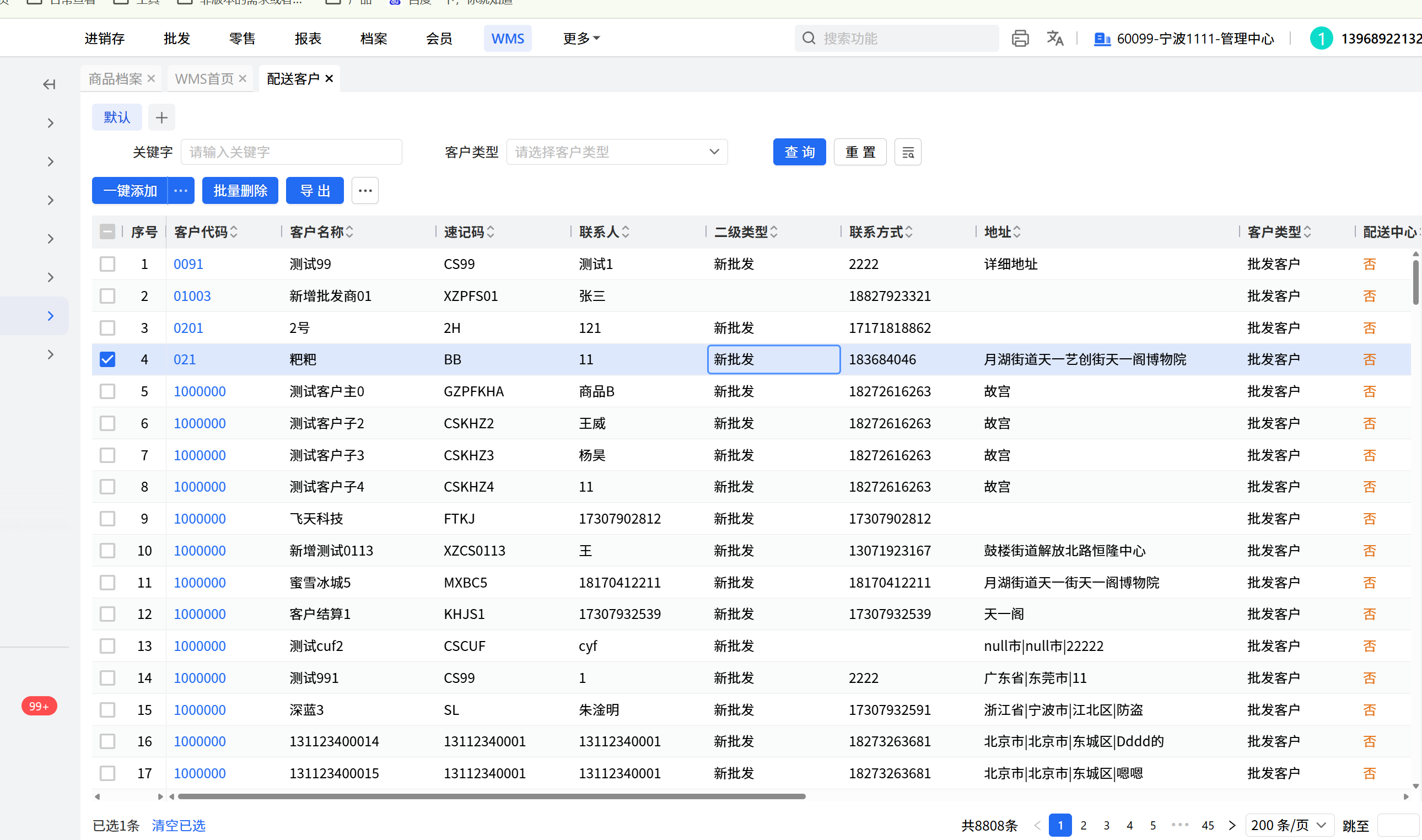 配送客户管理:新WMS-设置管理-配送客户“二级类型”,通过“同步客户信息”修复历史数据