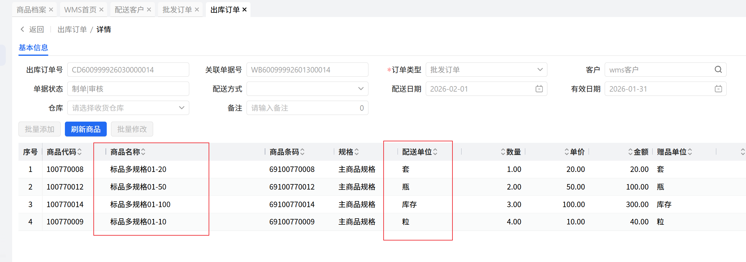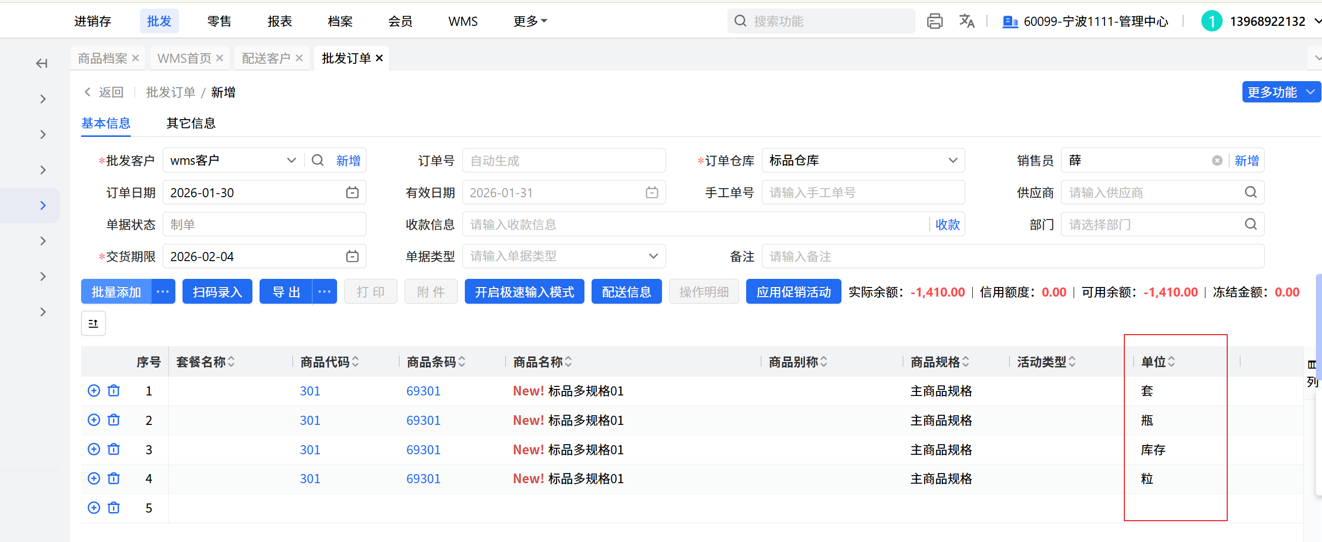 在WMS日常运营过程中,上游新商贸客户有按“订货规格”(多配送单位)下单的核心需求,例如商品: