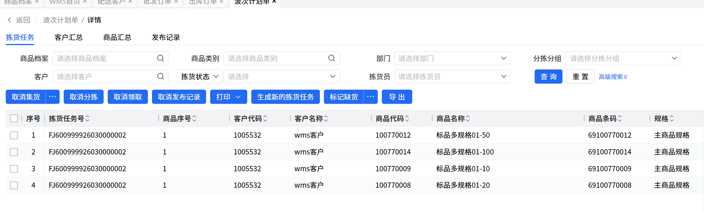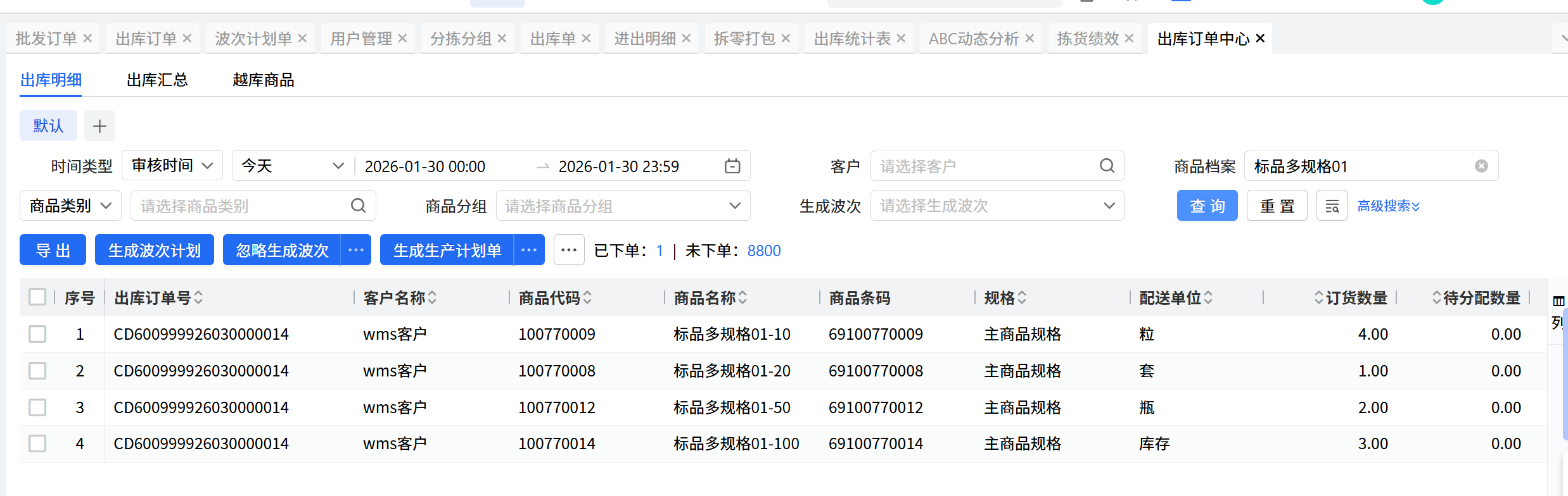波次计划单操作:新WMS-标准管理-波次计划单“混合分拣”(规格商品按规格拆分生成)