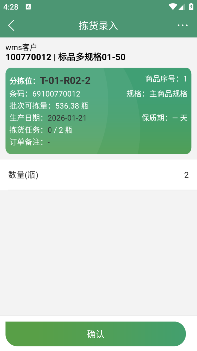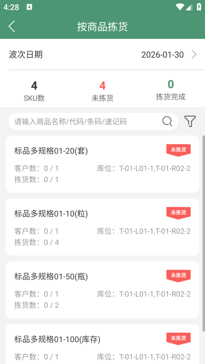 同一款商品的多个订货规格,库存合并计算,波次分拣、拣货任务按规格拆分,确保分拣与库存数据一致。
