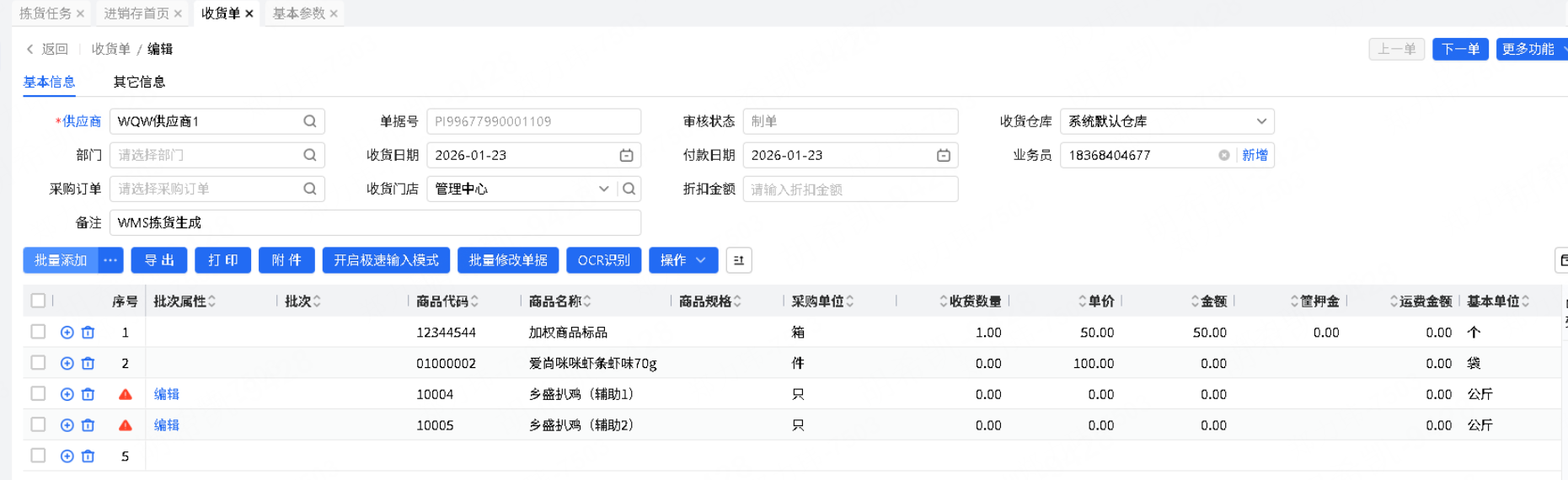 客户升级新界面,发现拣货任务钟生成收货单无法添加和删除商品。未升级前老界面支持添加和删除商品。针对弱关联进行操作限制开放