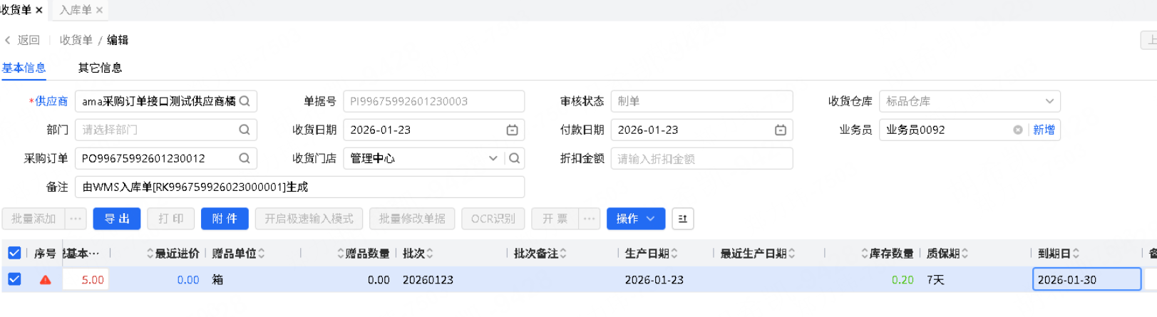 进销存增加到期日期,wms生成的单子需要同不兼容,针对wms生成单据进行倒算处理