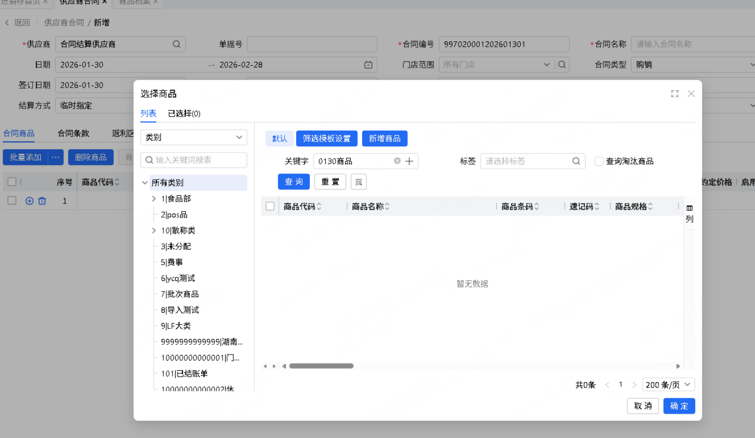 乐檬进销存 - 供应商合同添加商品时过滤“组合商品、自定义组合商品”