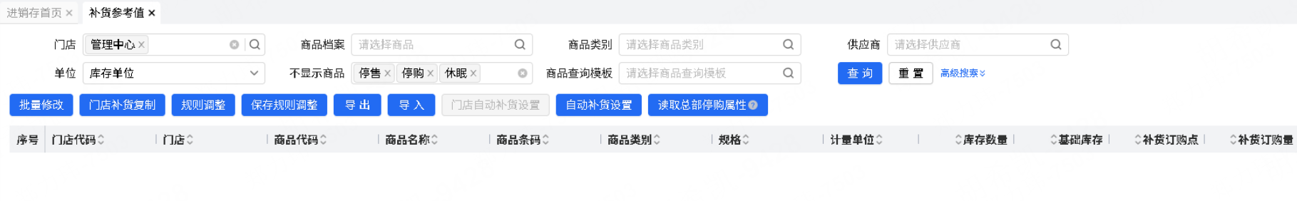 乐檬进销存 - 补货参考值“门店自动补货设置”取消仅当前登录门店=管理中心才显示的逻辑