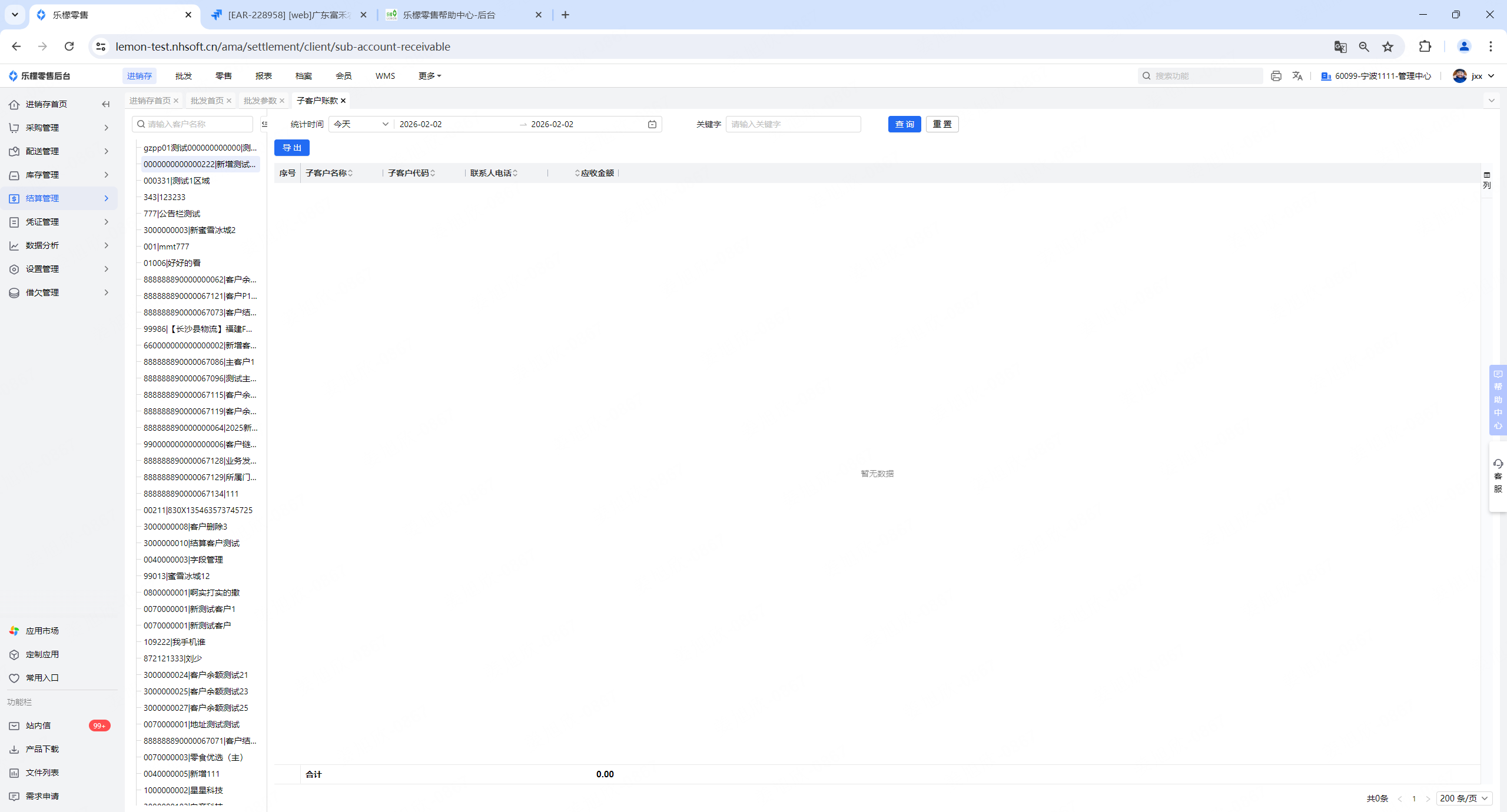 1、结算管理-客户新增一个模块“子客户账款”,权限:导出、查询,统计主客户对应子客户的应收金额