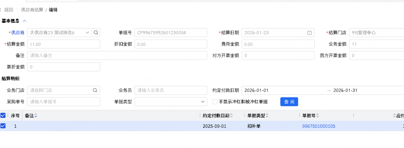 乐檬进销存 - 供应商管理其他信息增加参数“供应商结算自动推送生成资金应付单”