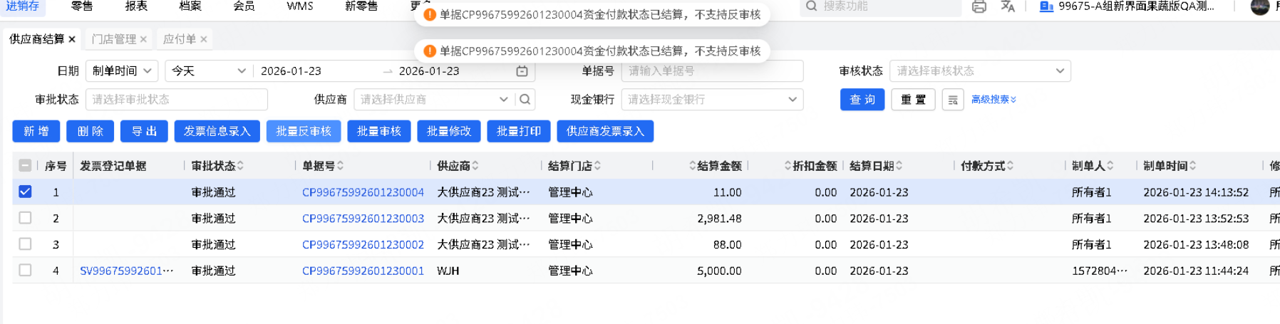 当参数开启:供应商结算审核时,调资金接口生成资金应付单