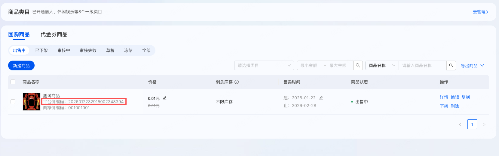 4、填入完成后,即可在支付宝神券工作台中,创建团购商品券,将平台侧编码复制,在乐檬的三方券ID中,填入即可完成神券与乐檬券的映射绑定(注意券售价和券面值的取值规则)