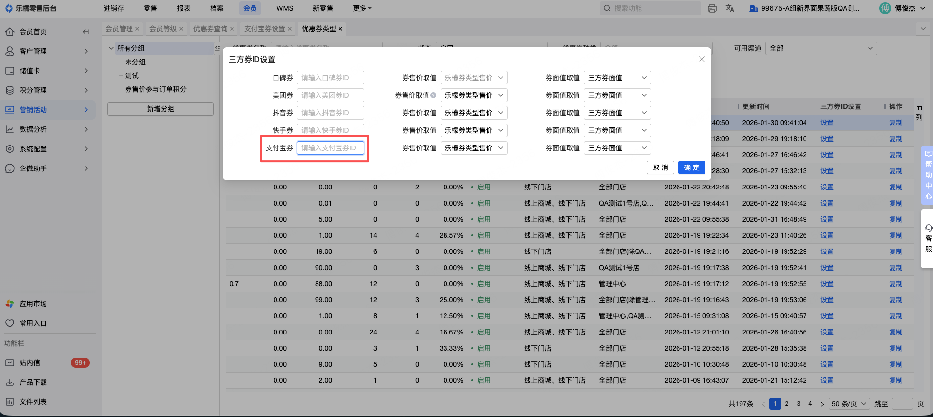 全渠道会员-支持支付宝神券