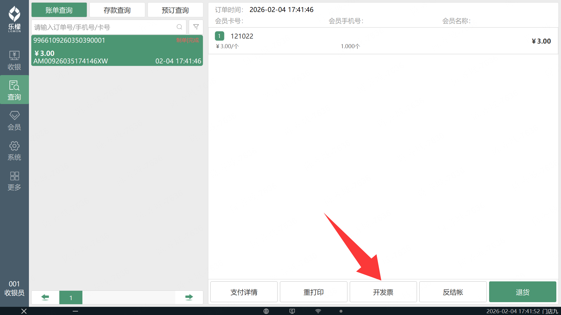 前台手动打印开票二维码,查询账单里点开发票,可以按需开票