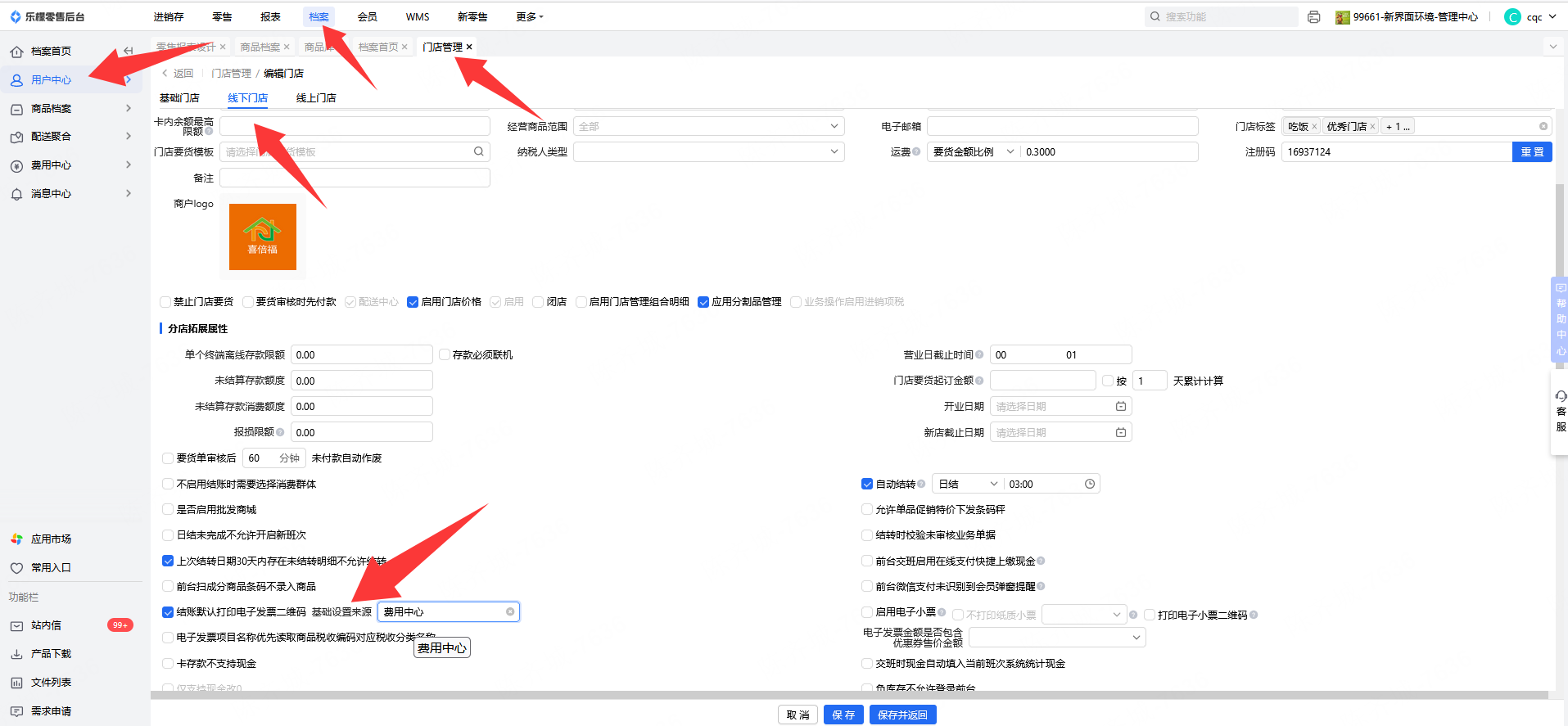 👉【操作路径】:档案-用户中心-门店管理-线下门店