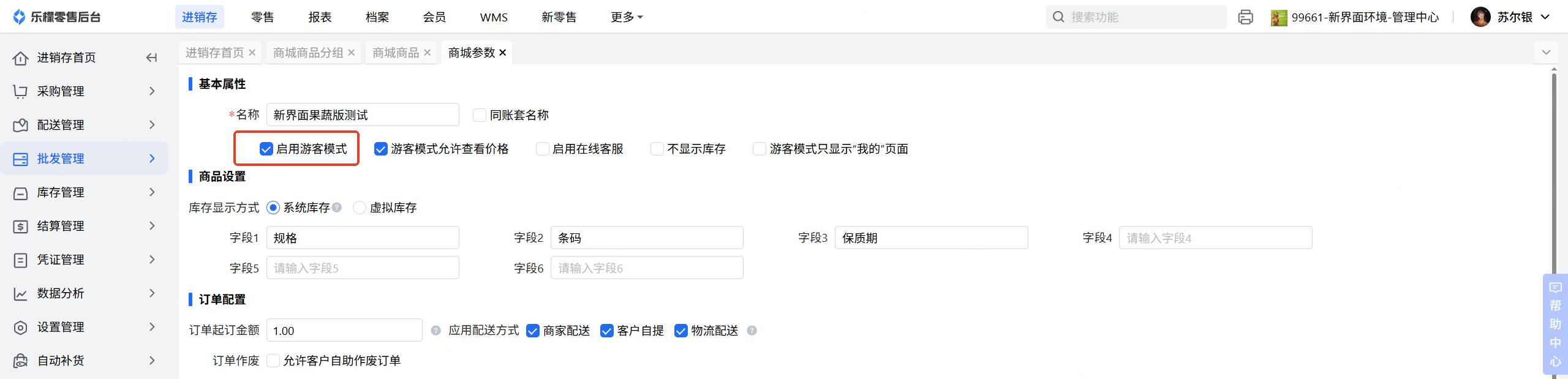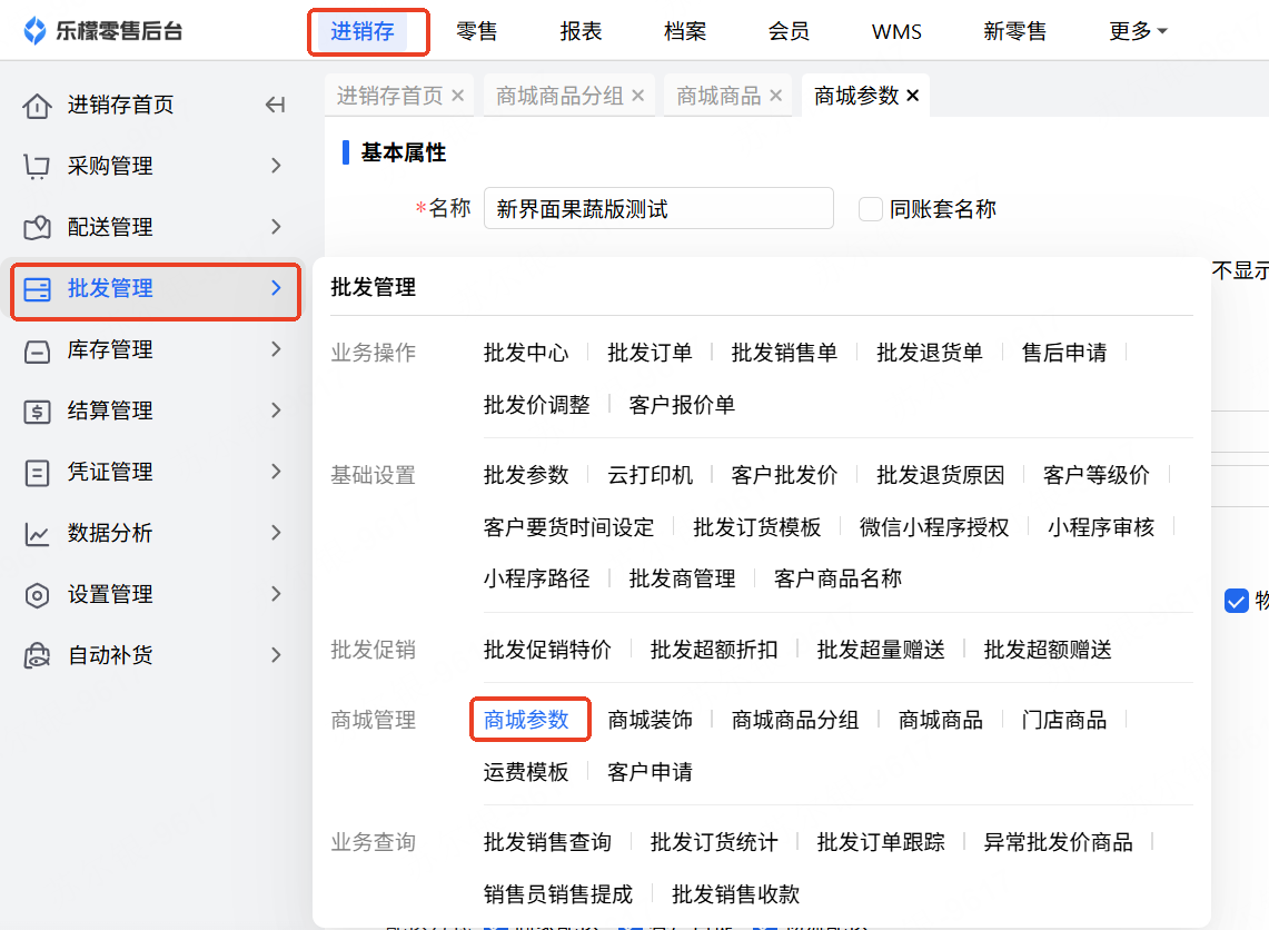👉【操作路径】:·1.进销存-批发管理-商城管理-商城参数