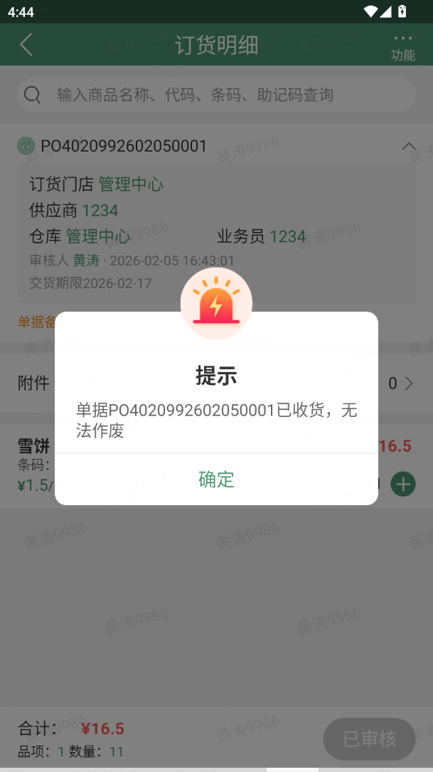 待审核:即制单状态,可再次编辑(添加 / 删除商品、修改数量、编辑备注等);