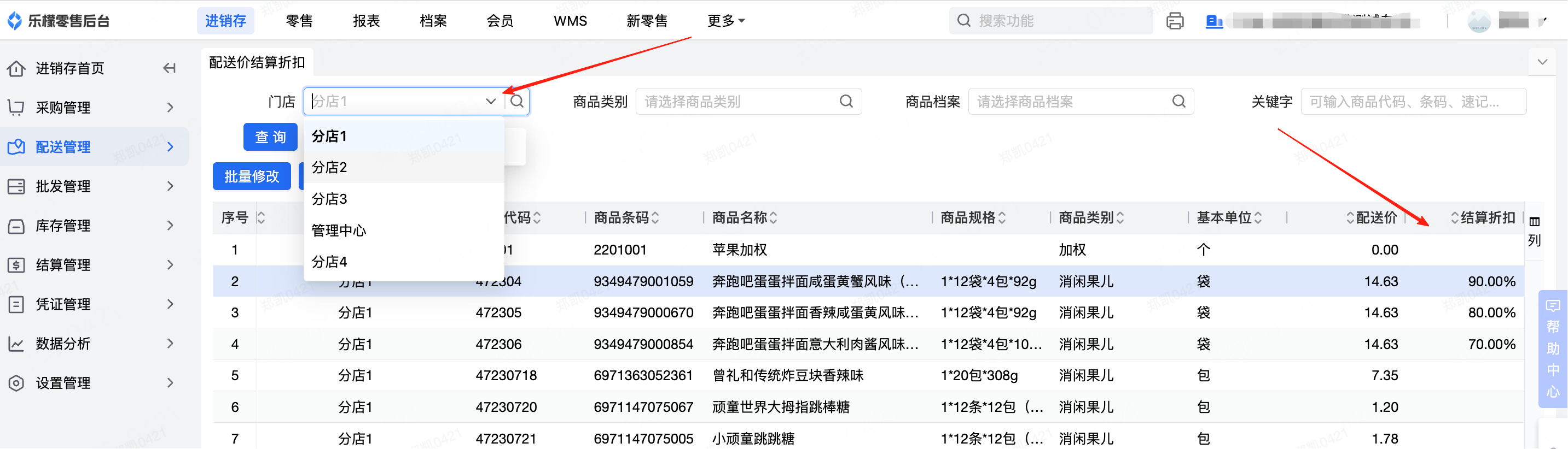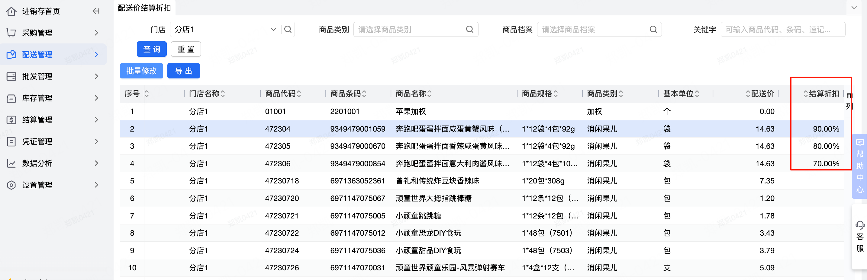 👉【操作路径】:进销存-配送管理-配送价结算折扣