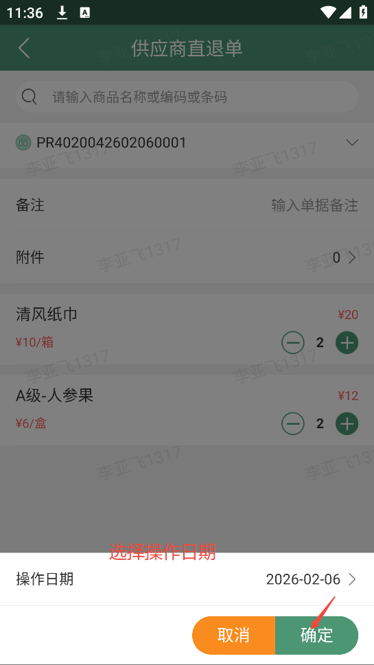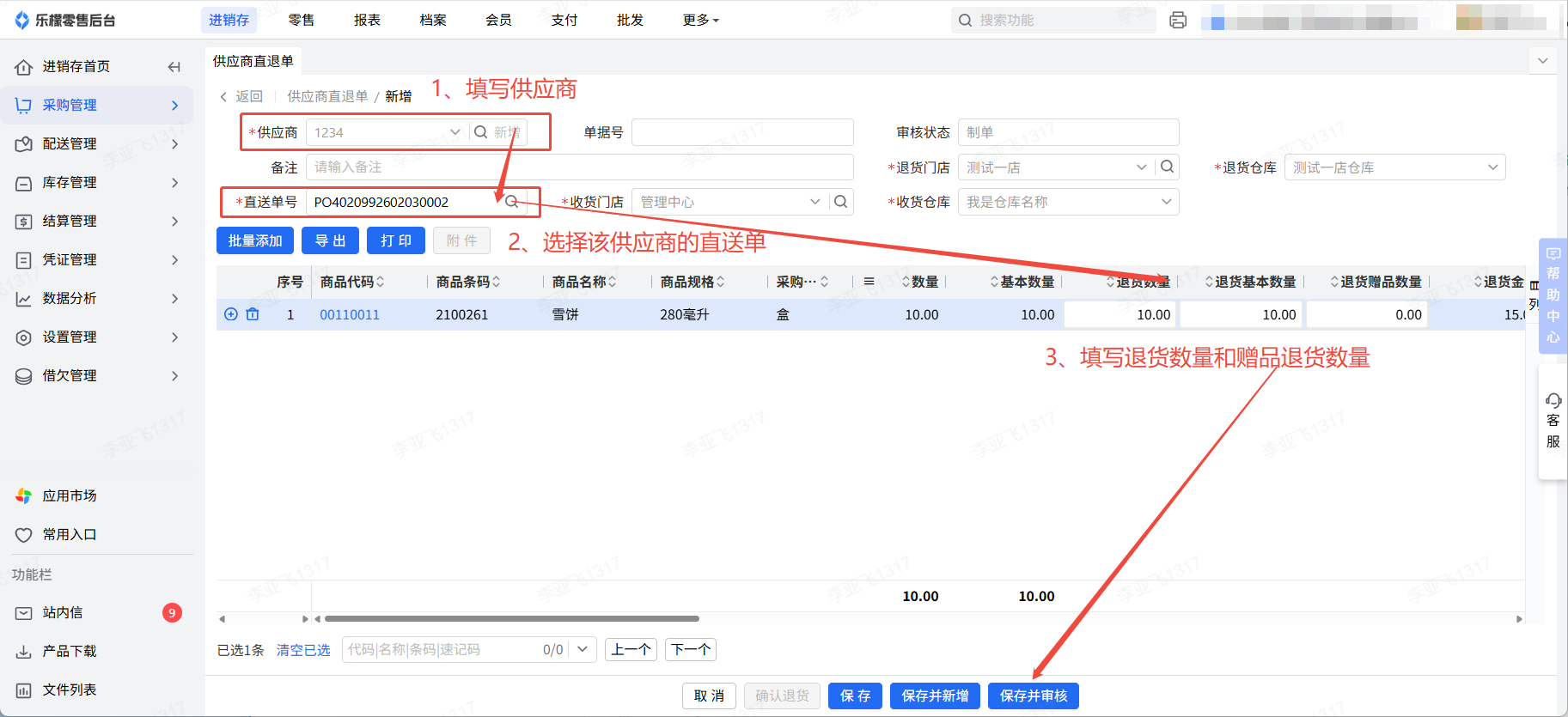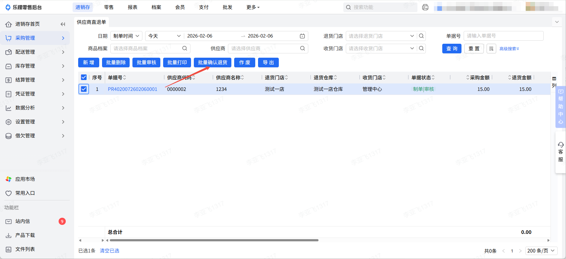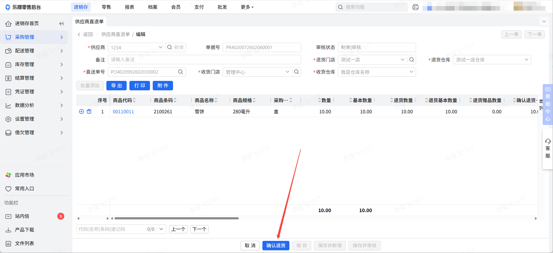 1.乐檬Web后台——进销存——采购管理——供应商直退单