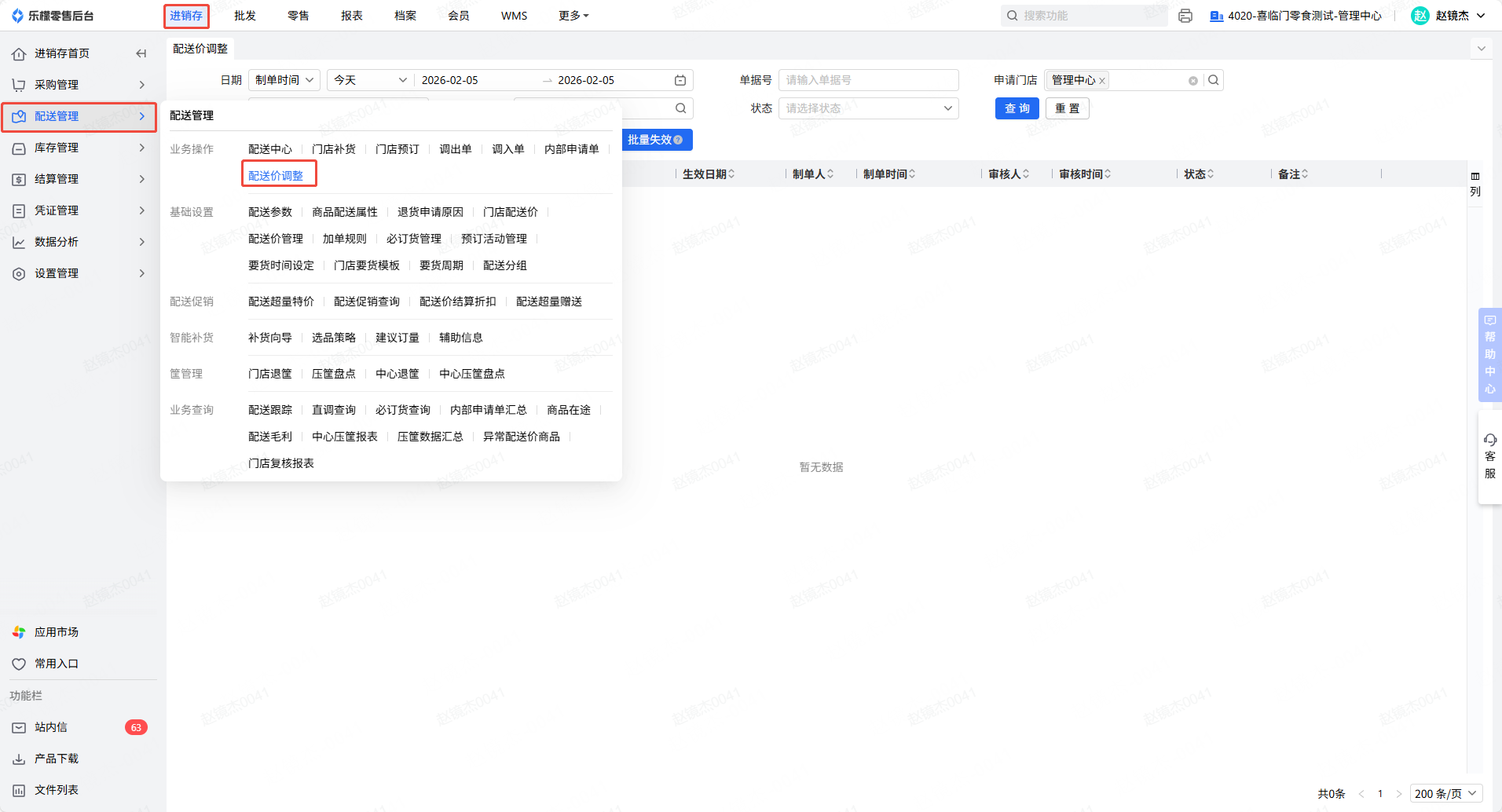 调整类型 | 可以选择是修改门店的配送价或者门店要货模板的价格 |