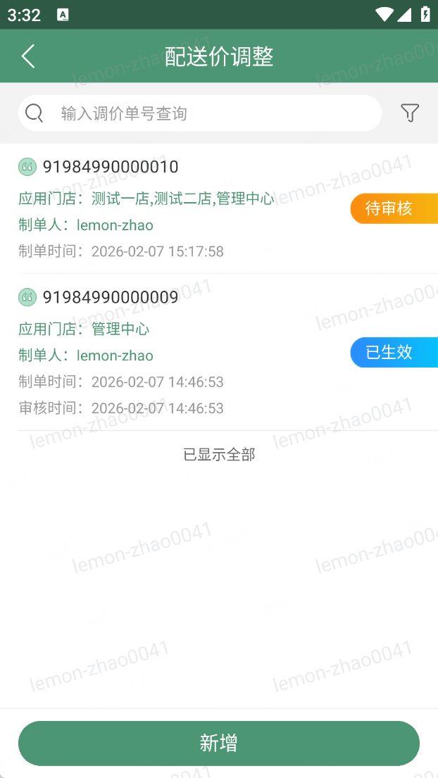 状态 | 配送价调整单单据状态,新增配送价调整单时为制单,系统自动生成。 |