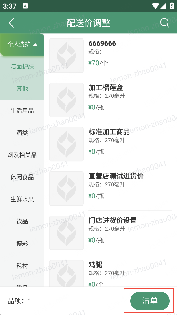 最后点击清单,确定商品配送价格无误后,点击审核。会弹窗提示“请确认是否审核配送价”,选择“确定”,调整单即完成生效。