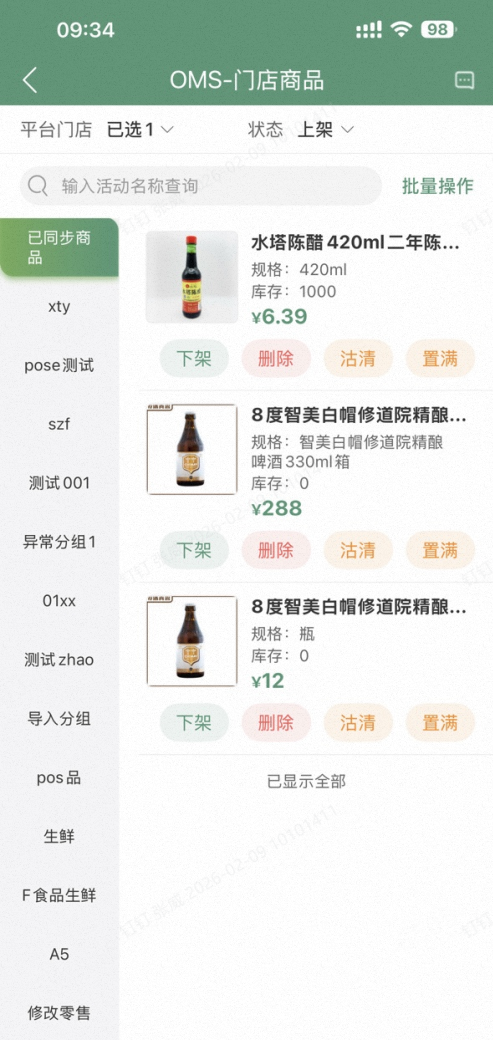 本次系统升级迭代,为了提升商家操作效率,增加查询商品便捷性,对APP-OMS门店商品进行优化,主要功能包括:1、支持快速选择商品分类;