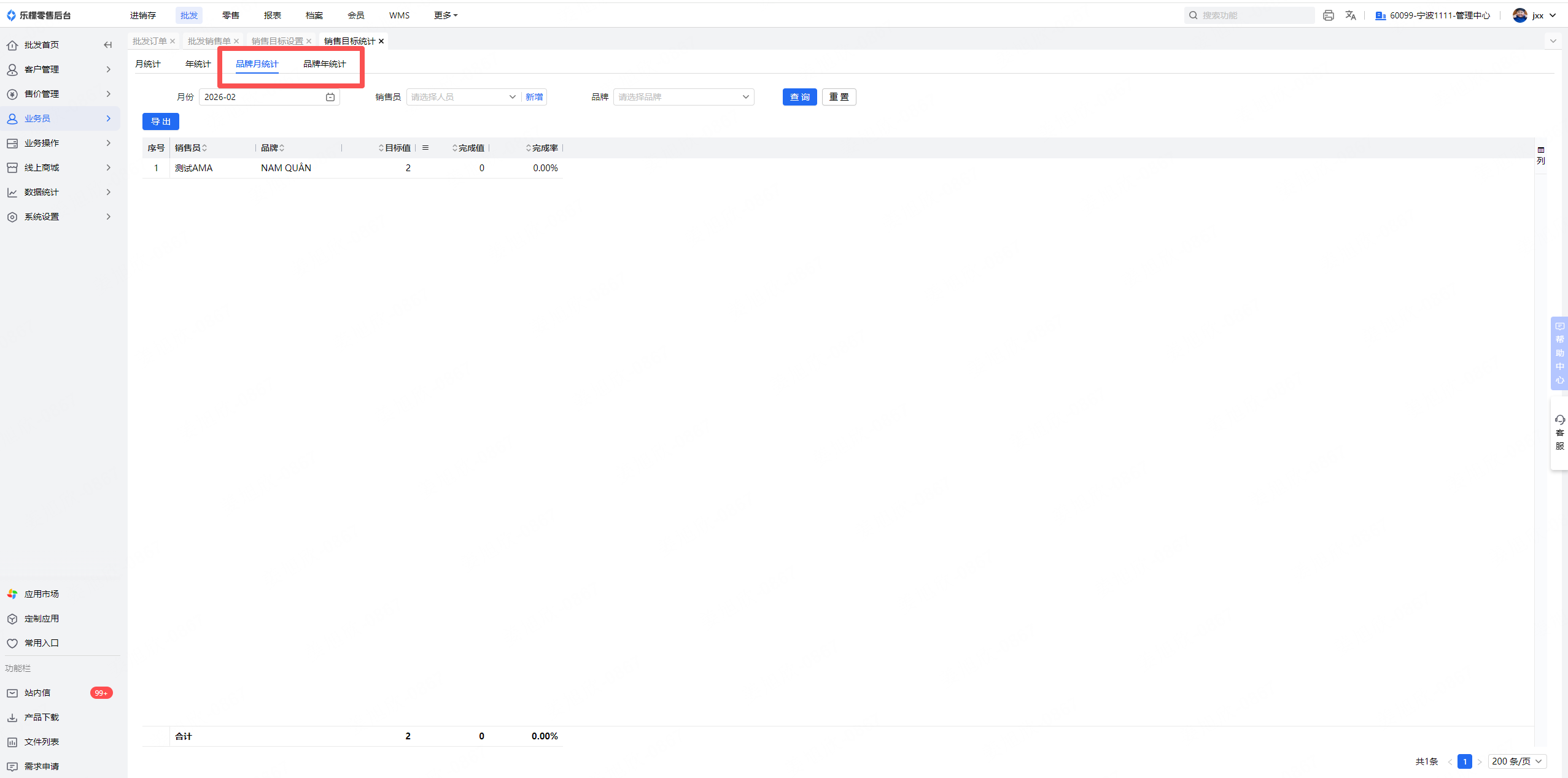 功能路径:WEB-批发-业务员-销售目标设置/销售目标统计;APP-数据-品牌目标统计