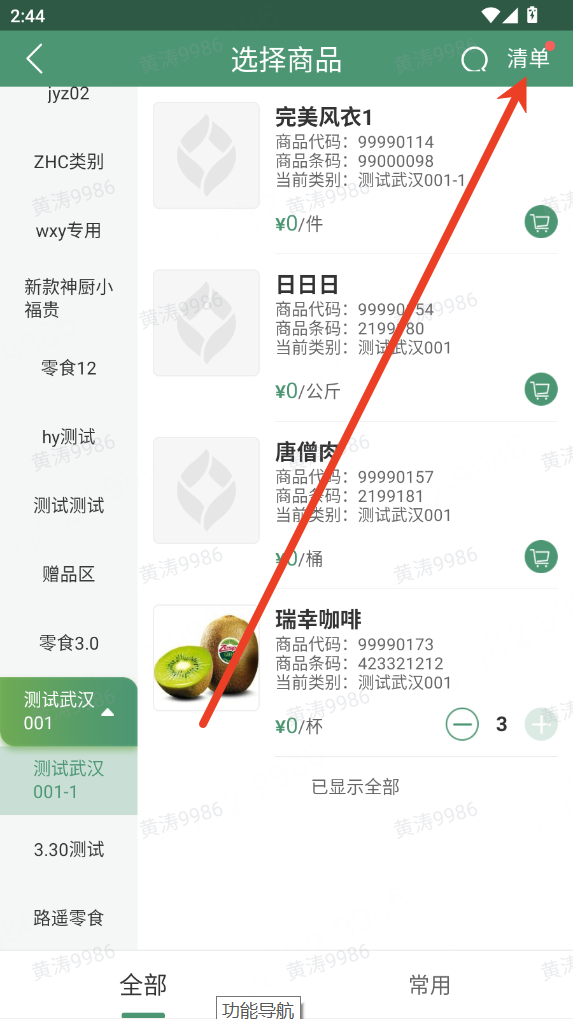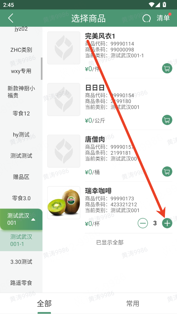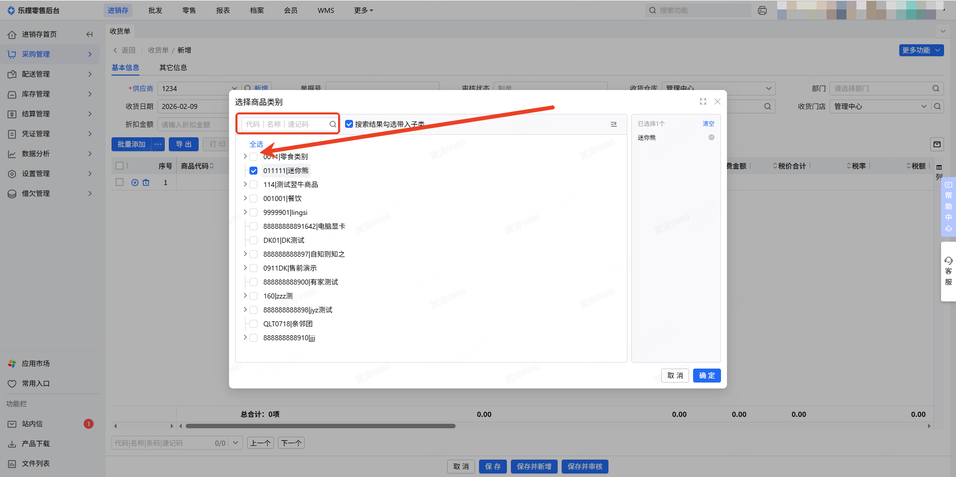 (4)支持按商品分类添加明细:可按商品类别快速选取对应商品,支持多类别复选添加。