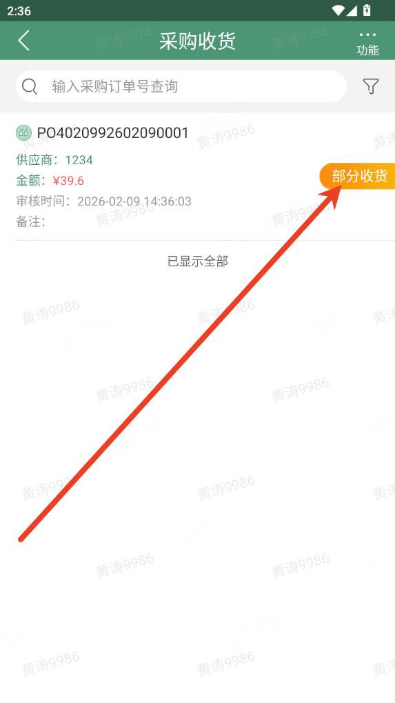 3.部分收货订单需要二次收货的处理