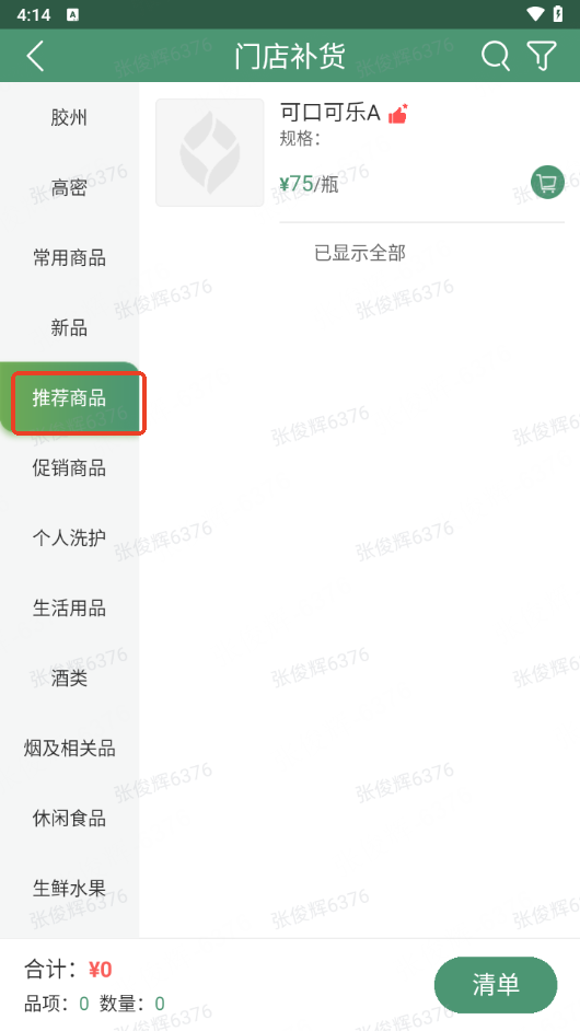 4、设置推荐商品门店app补货在推荐类目可以进行查看
