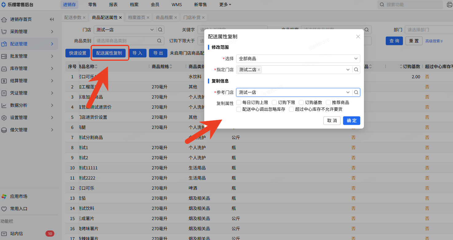 开启门店启用门店商品配送属性可以复制门店参数设置