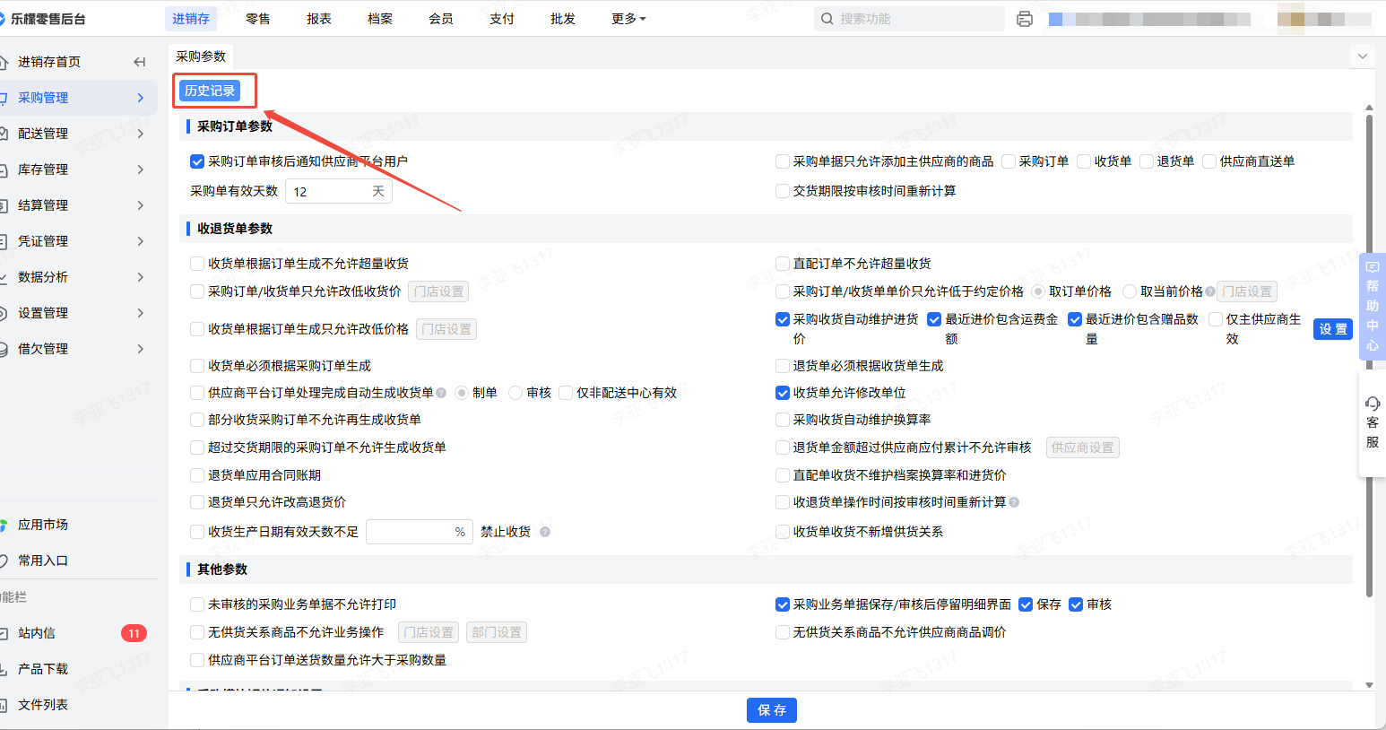 乐檬Web后台——进销存——采购管理——采购参数