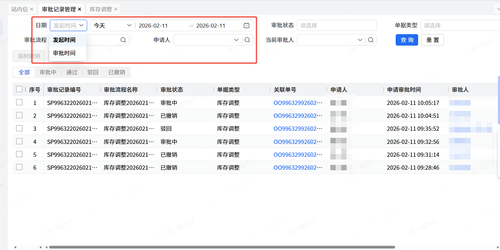 👉【操作路径】:档案-用户中心-审批流-审批流记录管理