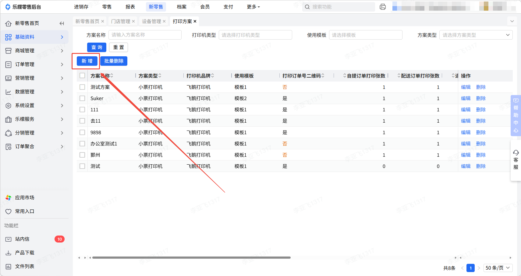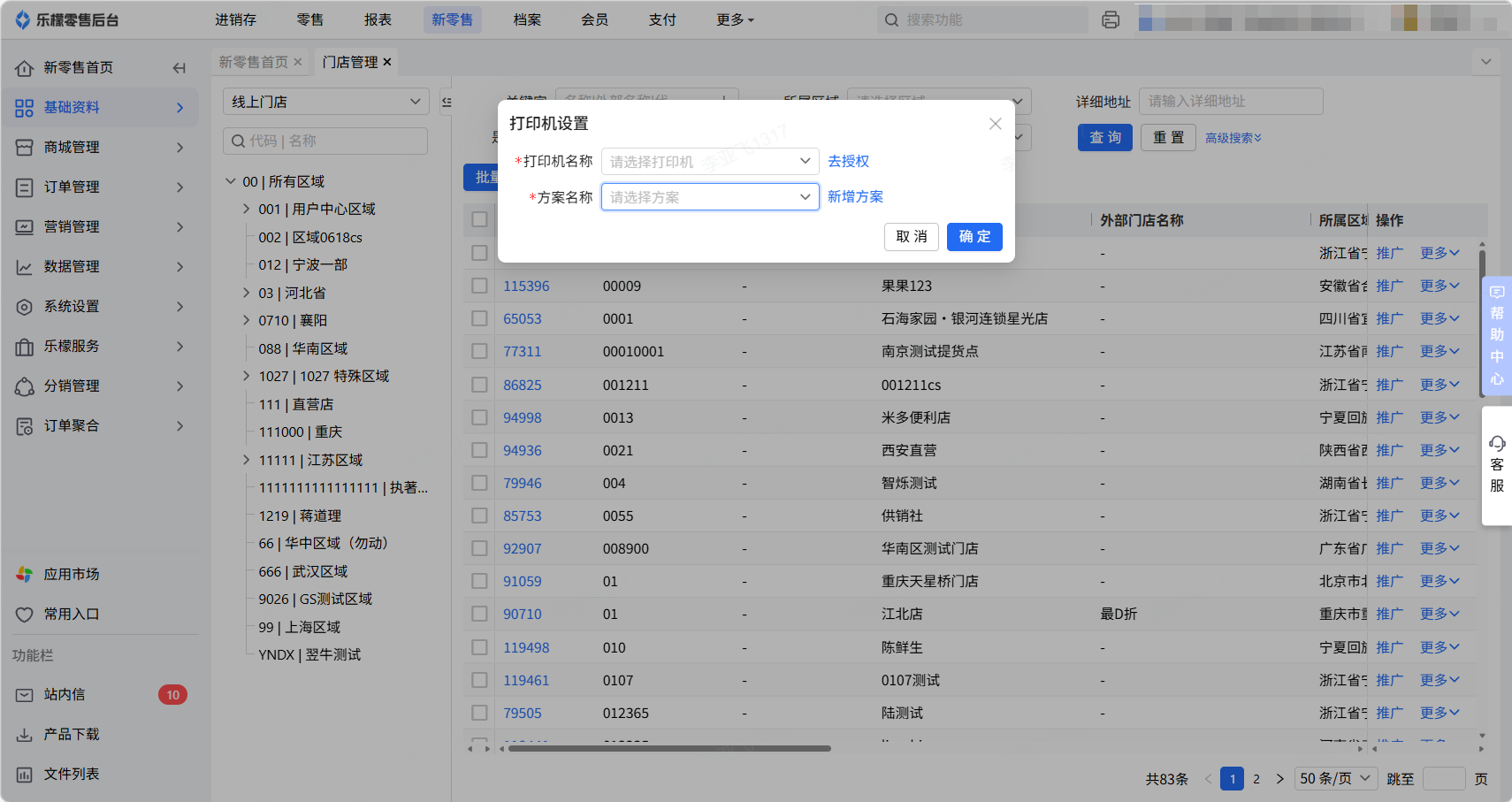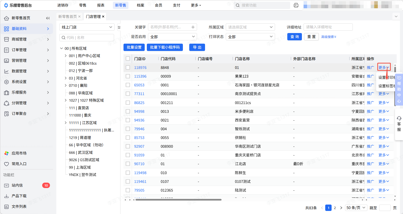 批量设置 | 可以批量修改勾选的门店的营业时间、包装费、预约自提、定时达、打烊、门店状态、自动呼叫 |