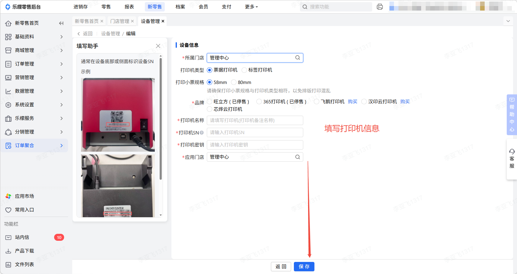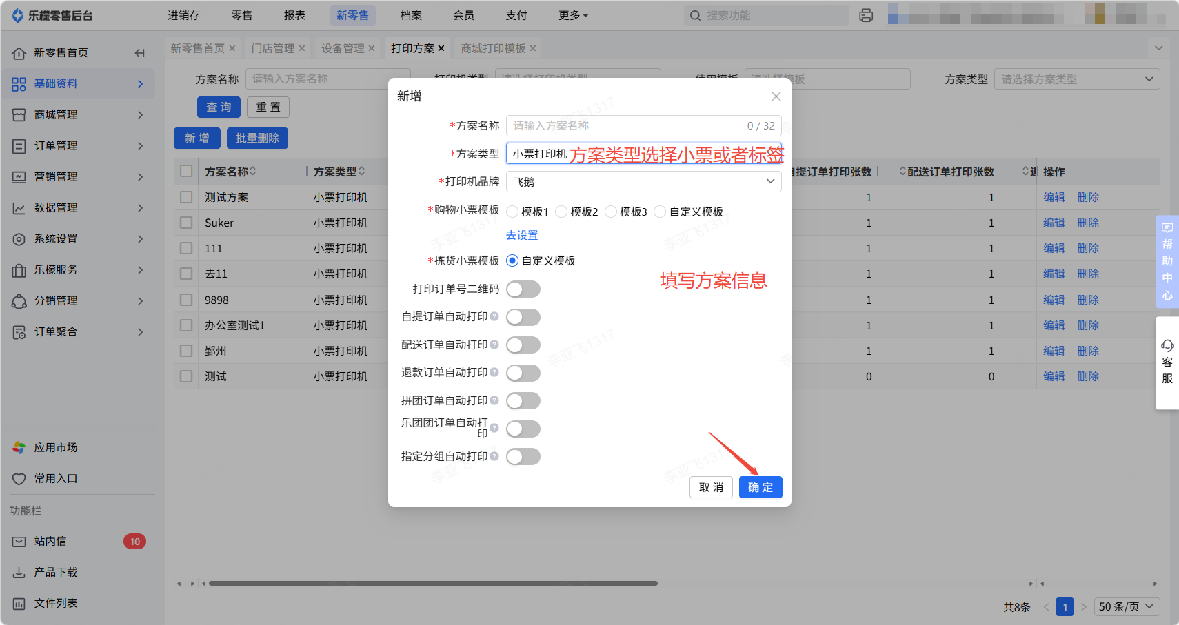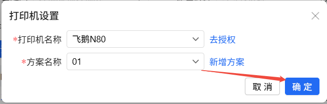 新增好打印机和方案后,把打印机设置地方的信息填写完整
